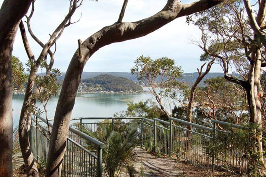 The Allen Strom lookout, located on the ridge above Rocky Point with views across Hardys Bay and Ettalong