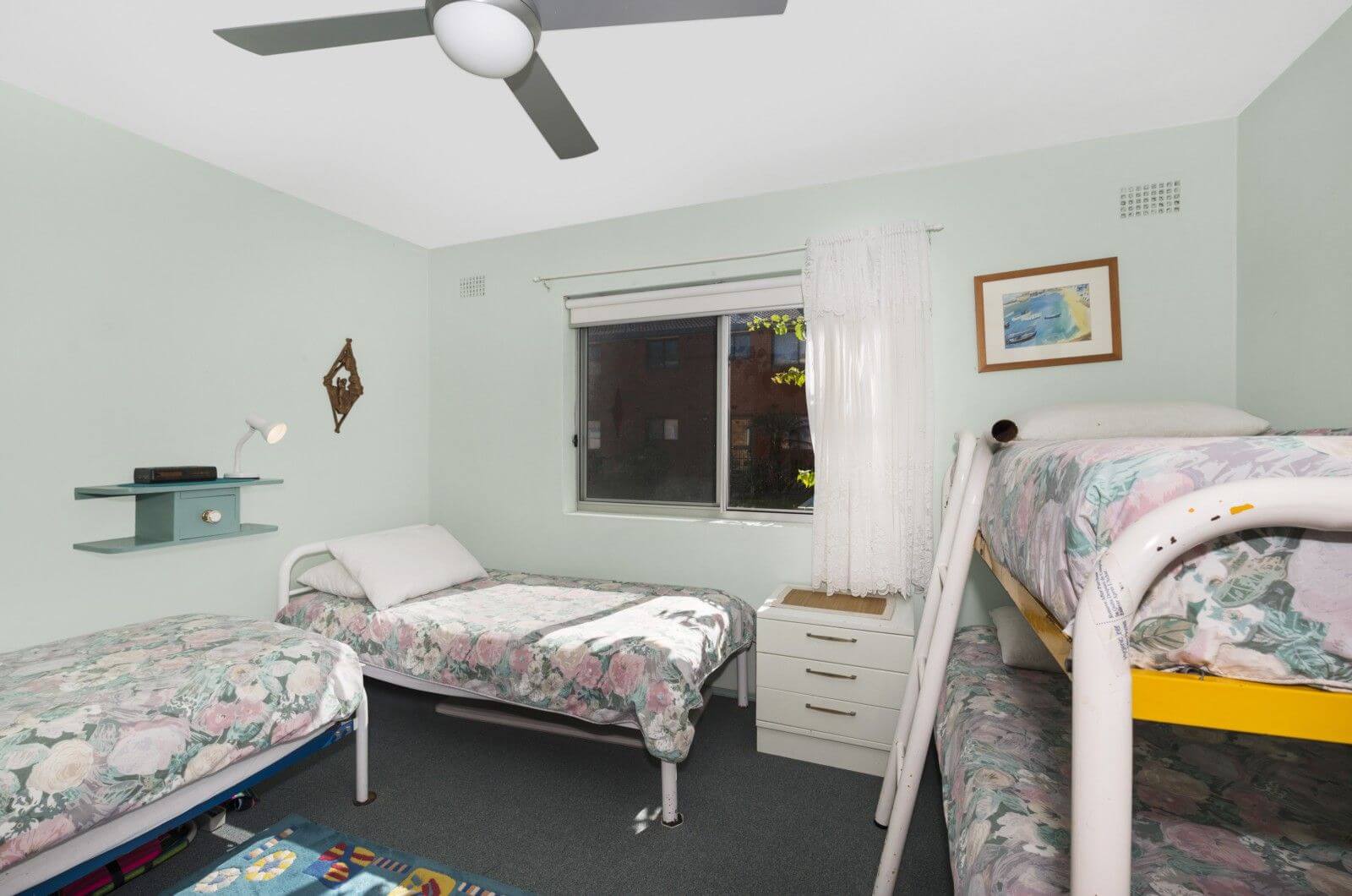 Bedroom 1 contains a queen size bed, bedroom two has a cantilver bed ( double on the bottom and single on the top) plus a single bed. Both bedrooms have ceiling fans.