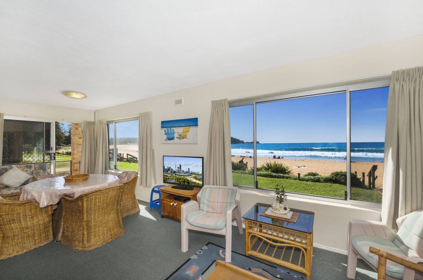 What a position! Absolute beachfront! This perfect family apartment takes prime position at the popular South Strand complex - right behind the flags. Just step out from the apartment onto the golden sands of Avoca Beach.