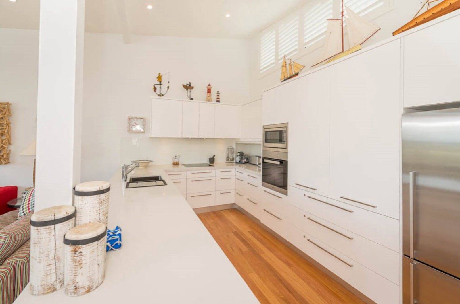 There is a family room with large flat screen TV and DVD, surround sound, Foxtel and fire place, which opens onto the courtyard. Upstairs to the brand new, well equipped, open plan kitchen boasting induction cooking, vintec wine fridge and upmarket appliances. Sorry but no use of garage.