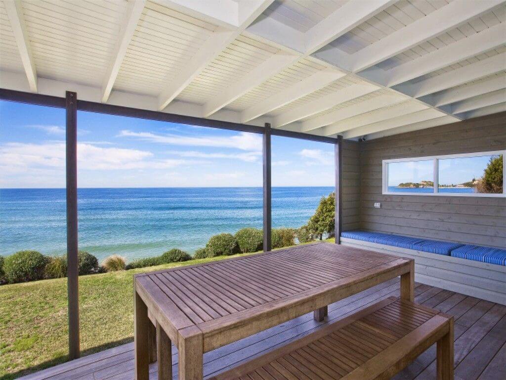 *Large entertaining deck overlooks ocean; polished wood floorboards