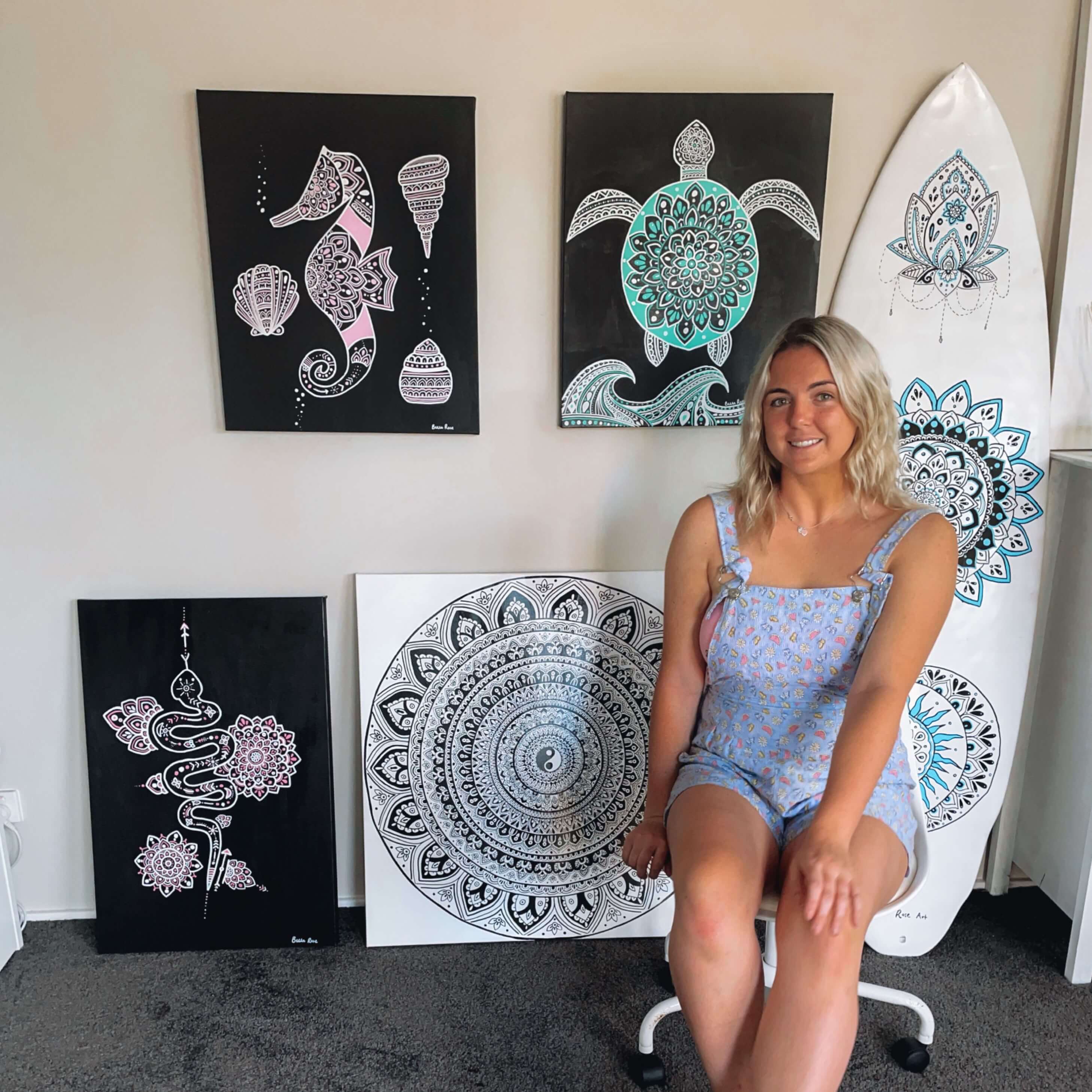 Bella is a self taught artist specialising in mandalas and patterns. Growing up on the Central Coast, her inspiration comes from nature - especially the ocean.