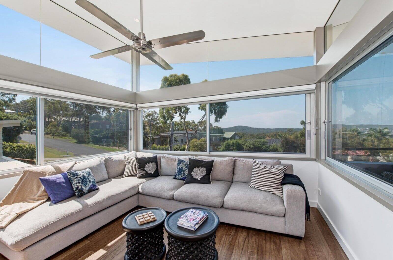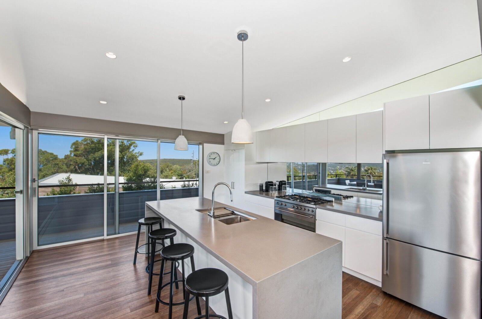 Calma by the Sea is a beautifully renovated property, with commanding views over Macmasters and Copacabana Beaches. The property is situated 800m from the beach. Minimum 5 night bookings. Family bookings only.