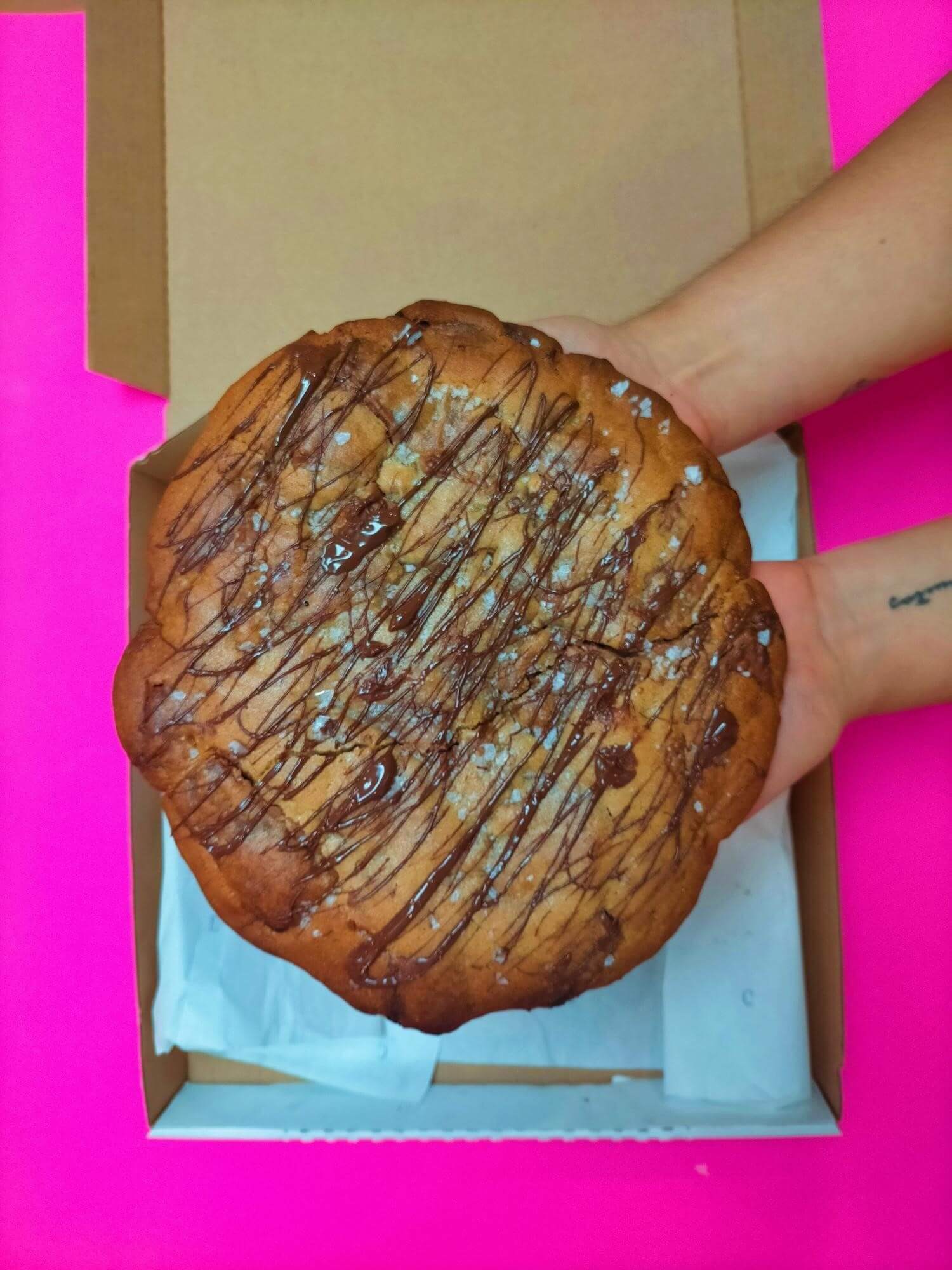 Don't forget the Giant Cookie! It feeds up to six people for just $20. This jumbo cookie is made with chocolate chunks and topped with sea salt flakes. You can also add your favourite toppings for just $2 each, which includes Biscoff, Kit Kat Gold, Caramel, Kinder or Pecans.