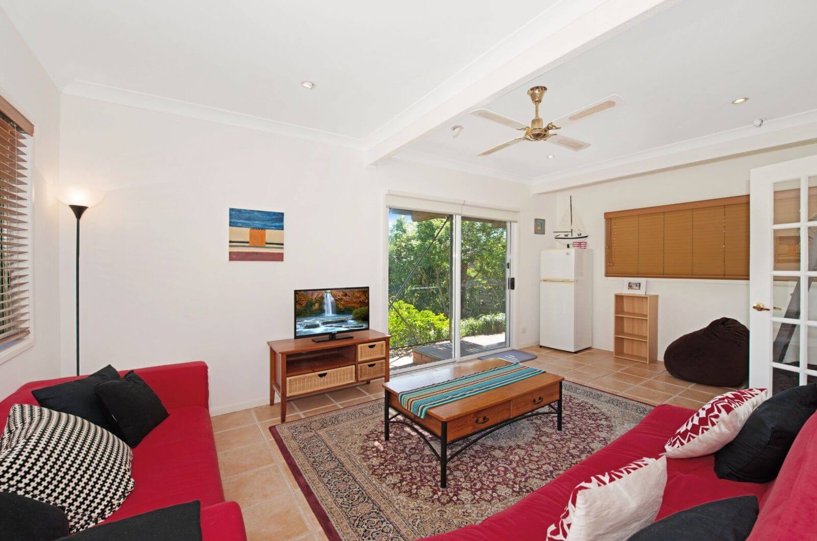On entry level you will find 1 bedroom with Cantilever bed, modern bathroom, laundry with washing machine and dryer, additionally there's a rumpus room with television. Great for the teenagers!