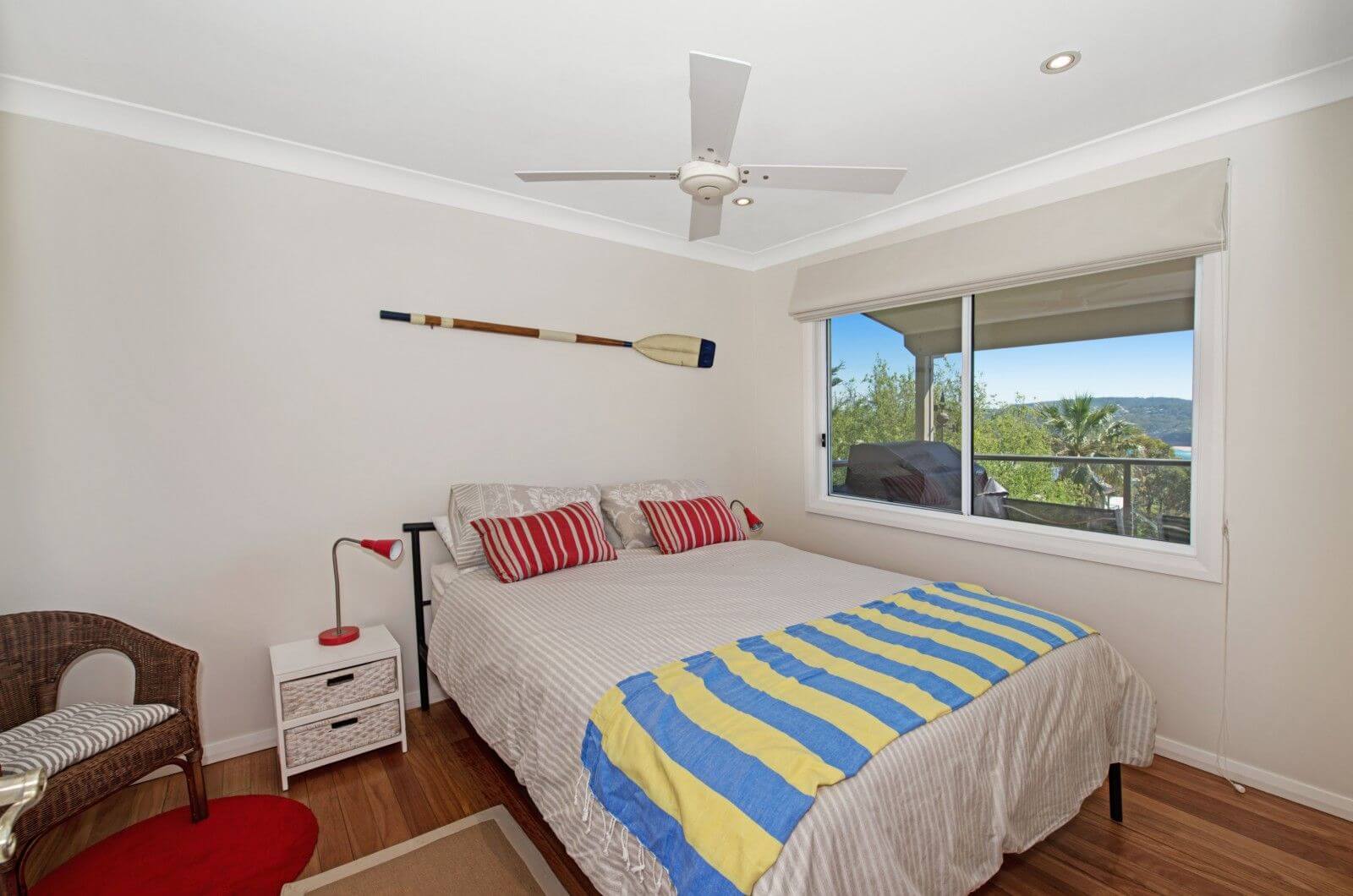 Upstairs has an air-conditioned living area with large television and blu-ray player. Modern open plan kitchen with dishwasher and main bathroom is also on this level. Main bedroom contains Queen Bed, and Ensuite with bath, Bedroom 2 has a queen bed, Bedroom 3 has two single beds. Linen not provided. Deck is child proof.
