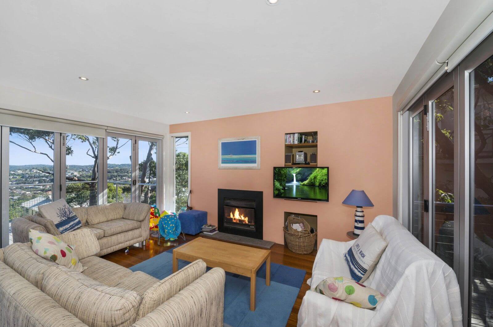 The main bedroom upstairs contains queen size bed, complete with ensuite and incredible views. Bedroom two has a queen size bed. Bedroom three has a double bed. Bedroom four has a single + trundle (which converts to either a double or two singles if required). Linen not provided.