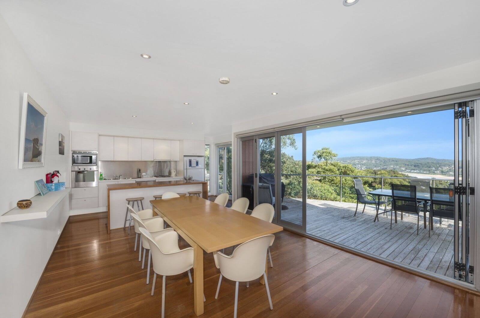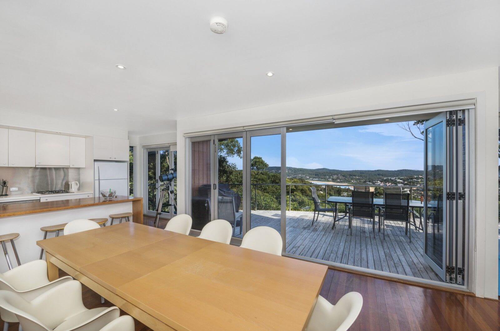 Copacabana Family Accommodation - This modern house has expansive views of Copacabana. The property is stylish, and has magnificent decks with views, outdoor lounges, and dining setting.