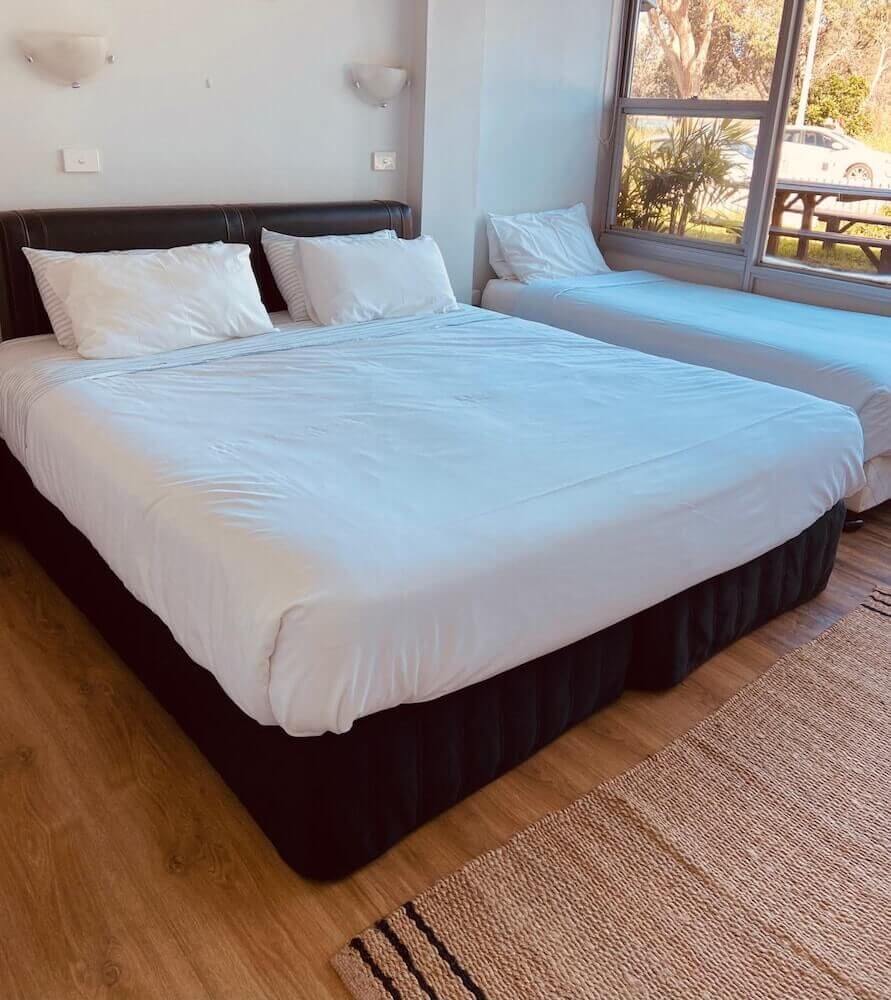 The motel has eight standard double rooms, which can accommodate a couple and one or two children in single beds. For larger family groups, the motel can accommodate up to eleven people in a fully self contained unit which includes a real kitchen. Another two bedroom suite is available for two couples or those couples with older kids. There’s plenty of secure parking for vehicles & boats as well as secure storage for surfcraft, fishing rods & anything else you want to put in the sea.
