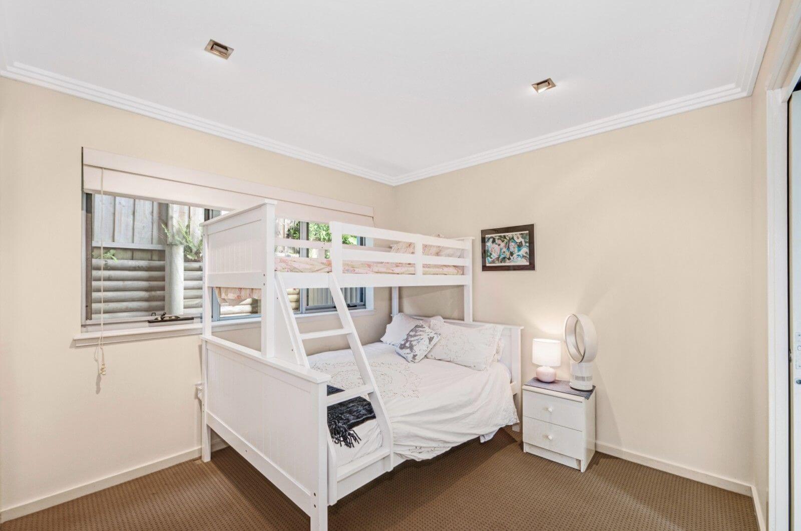 On entry are two bedrooms and a large bathroom with bath. Bedroom 1 has a double bed with a single on the top and bedroom 2 has 2 single beds. There is a double lock up garage. The laundry with washing machine and dryer is located in the garage.