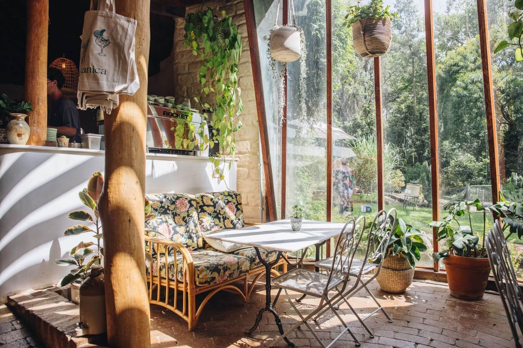 A European-style cafe set in the lush garden grounds of Distillery Botanica in Erina.