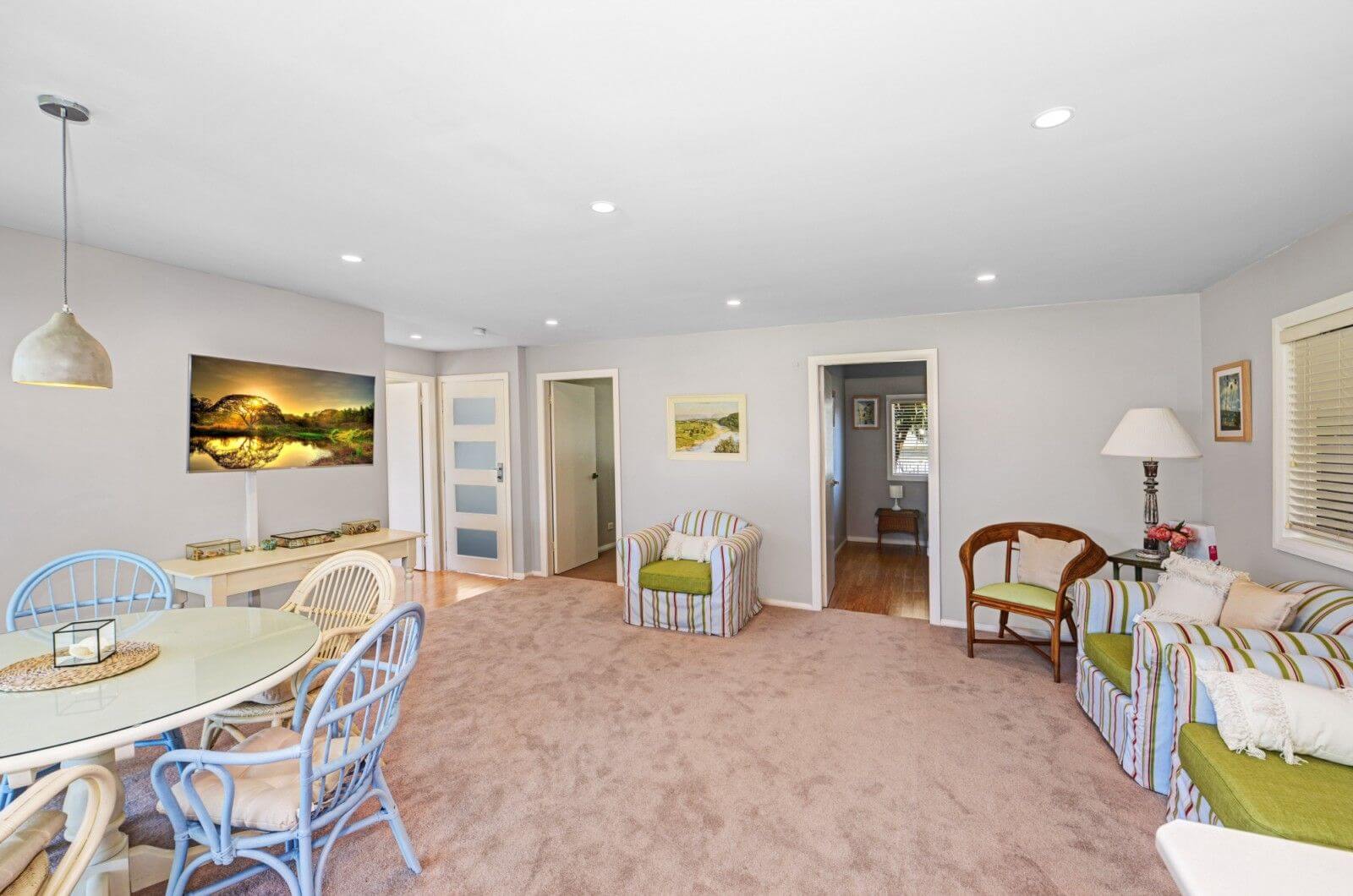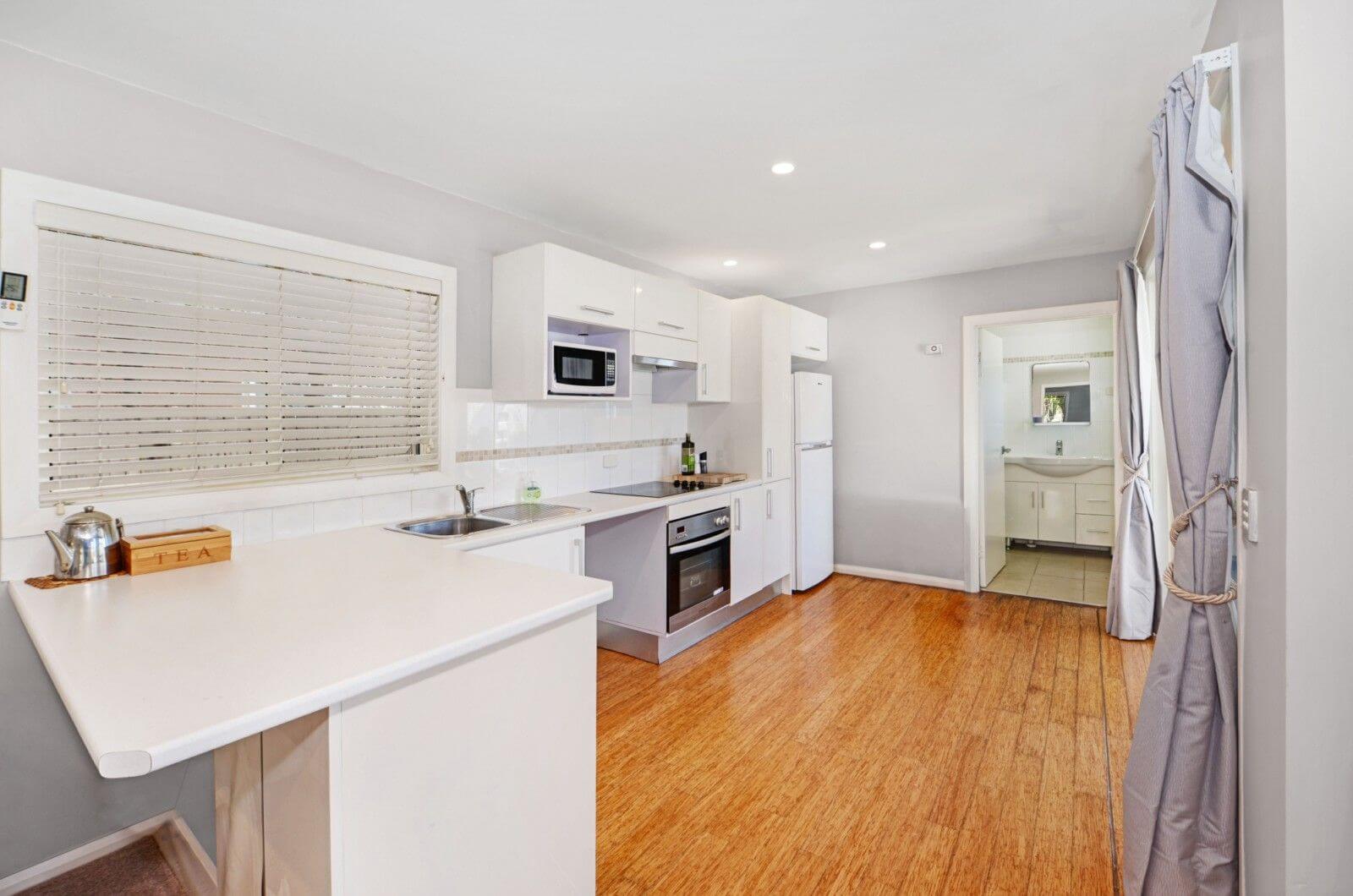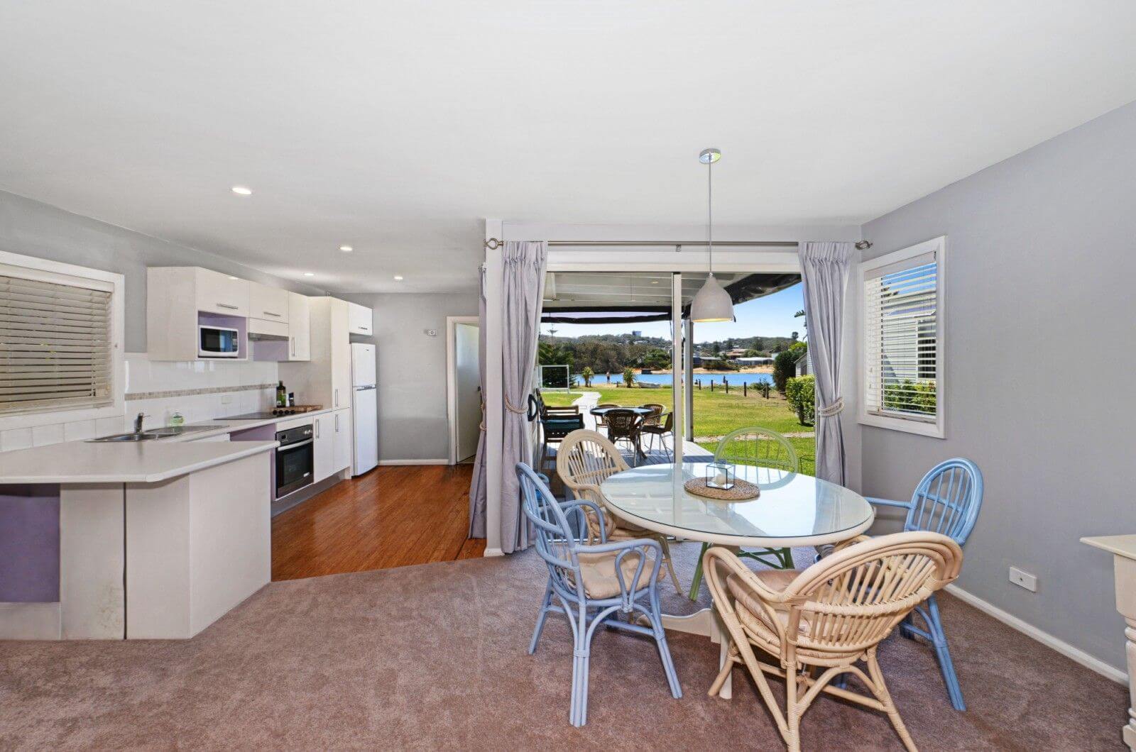 Open plan kitchen, dining room and lounge room with views straight out to the lake. Air conditioned in the lounge room. Wi Fi connected.