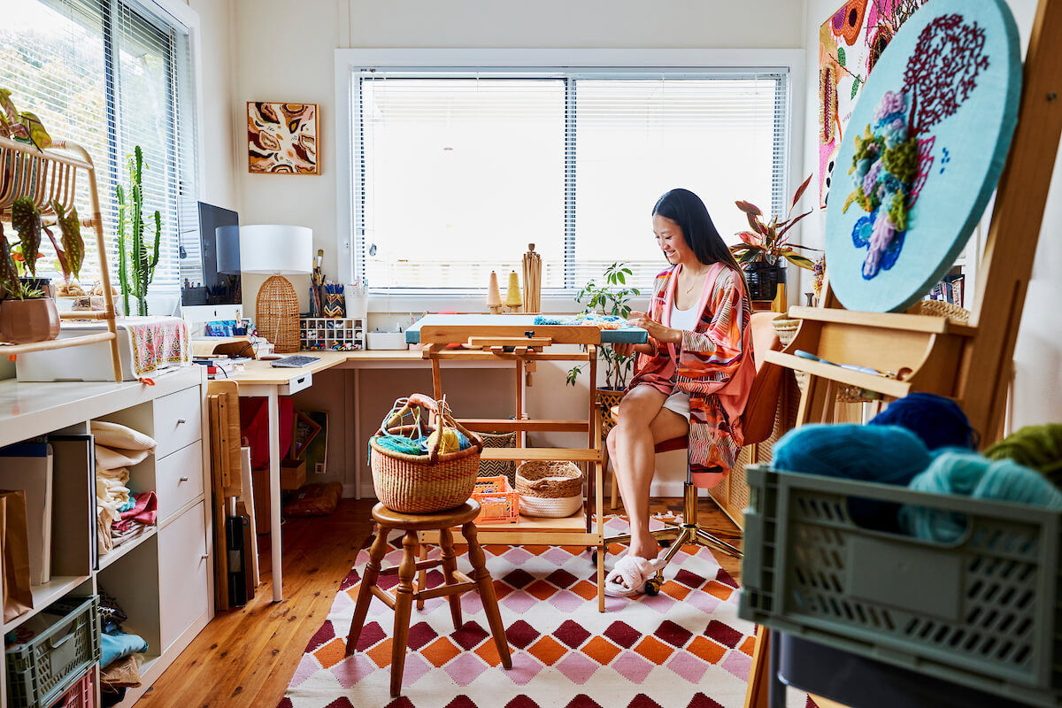 After breakfast, we usually go for a walk or bike ride along Ettalong foreshore and will grab a coffee from one of our favourite cafés. We also love to pop into one of our local bakeries, such as Rise Artisan Bakery or MamiGato, a French bakery that only opens on the weekend. (If we venture further afield, we go to Burnt Honey in Copacabana.) I usually work in my home studio for the rest of the afternoon. If it’s a hot day, we make the most of daylight savings and venture to the beach after dinner for a quick dip.