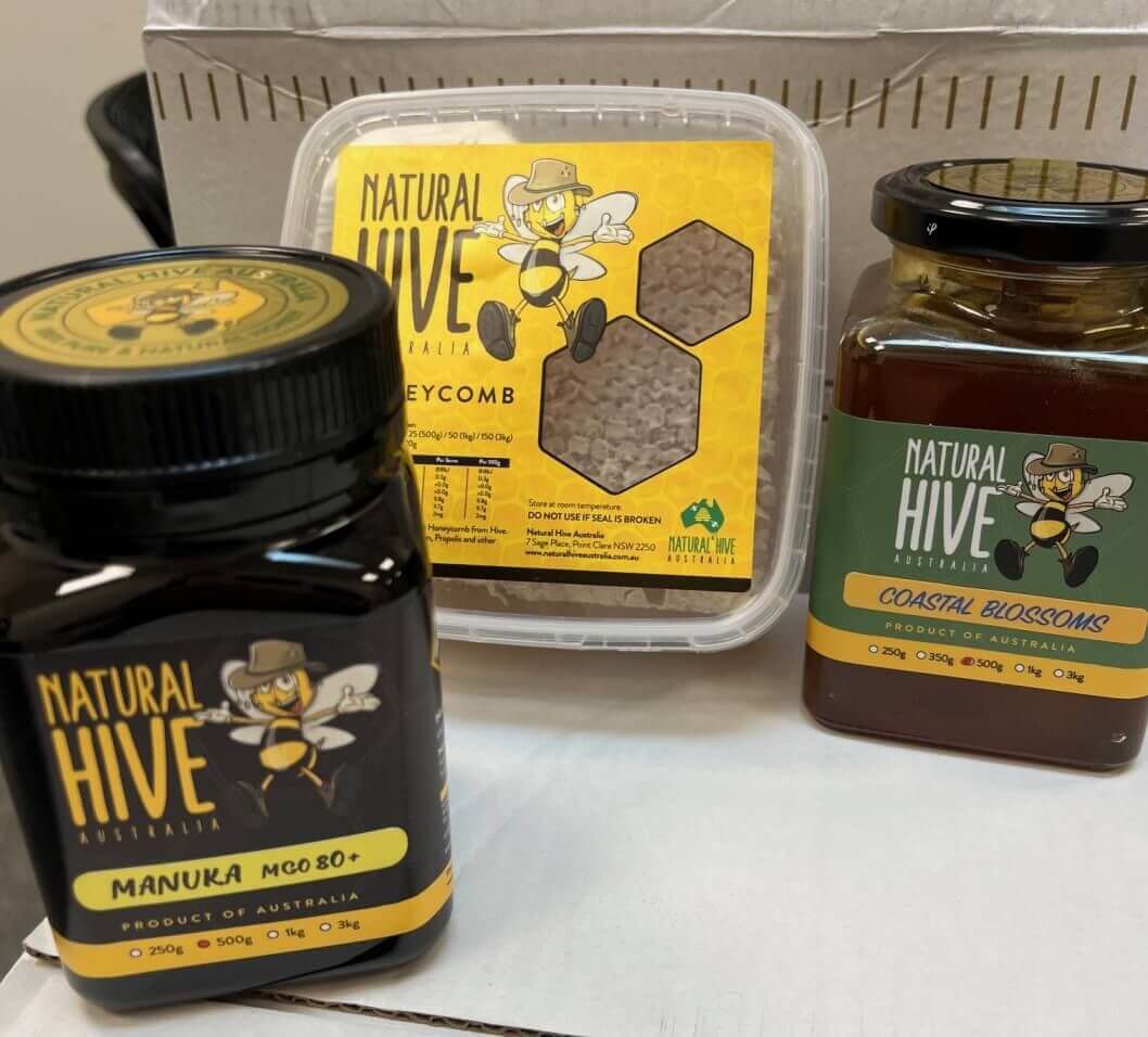Natural Hive's award winning honey is gathered from hives around the Central Coast, NSW. The honey available at the Central Coast Visitor Centre and Gosford Regional Gallery is from hives in Holgate and Killcare.