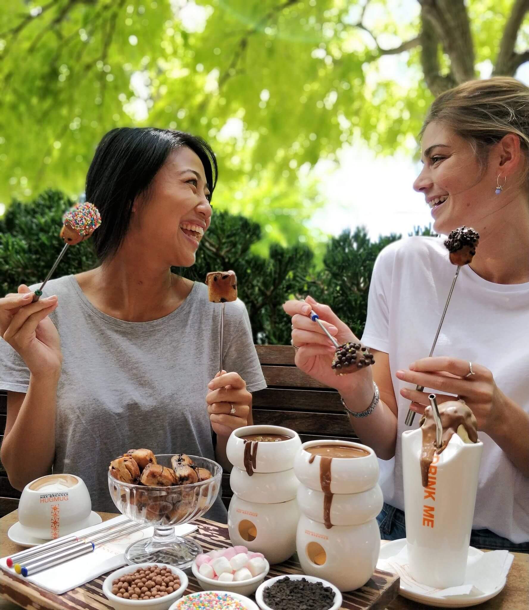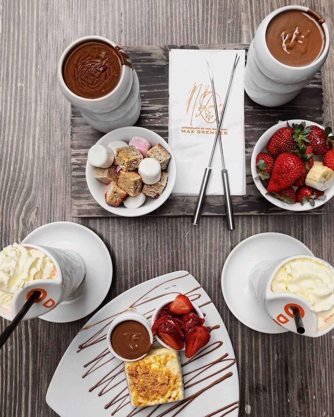 Chocolate is not just about taste. It’s a symbol of different aspects in our lives. Romance. Sensuality. Decadence. These aspects create the new chocolate culture of Max Brenner. Each location – the Chocolate Bar – is a shrine to this new chocolate culture. Inside, chocolate associations are expressed everywhere: in music, in design, and of course, in taste. It surrounds you and carries you away into your own chocolate mood. A holistic sensual experience, the Chocolate Bars are filled with huge chocolate bricks, candles, fine pralines, French chansons, crates with cocoa beans, colourful toy tins with ribbons, melted chocolate poured on warm pastry. Intrigued? We invite you to watch, smell, taste, and feel our chocolate love story.