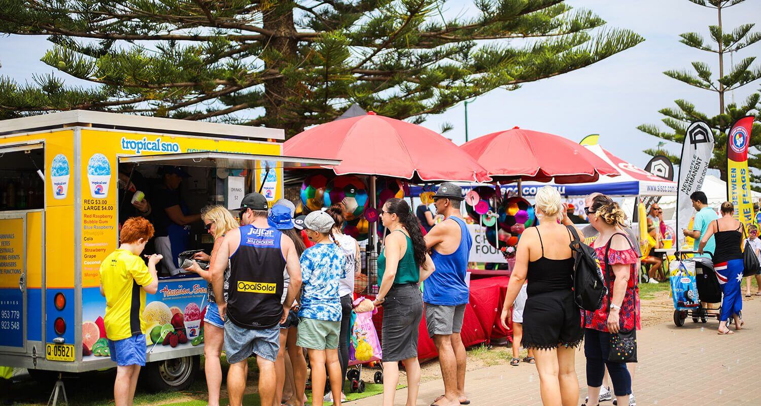 Oceanside park featuring a playground, a grassy area, walking paths, a shelter, toilets & more.