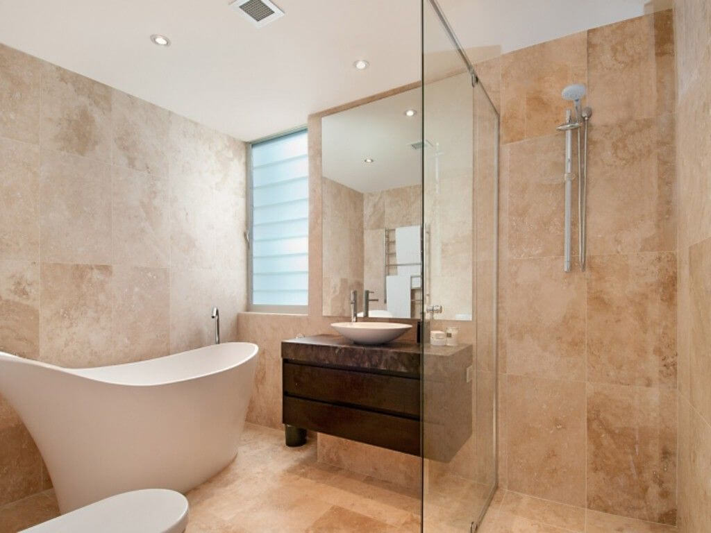 *Ultra modern main bathroom contains a stylish bath tub and shower