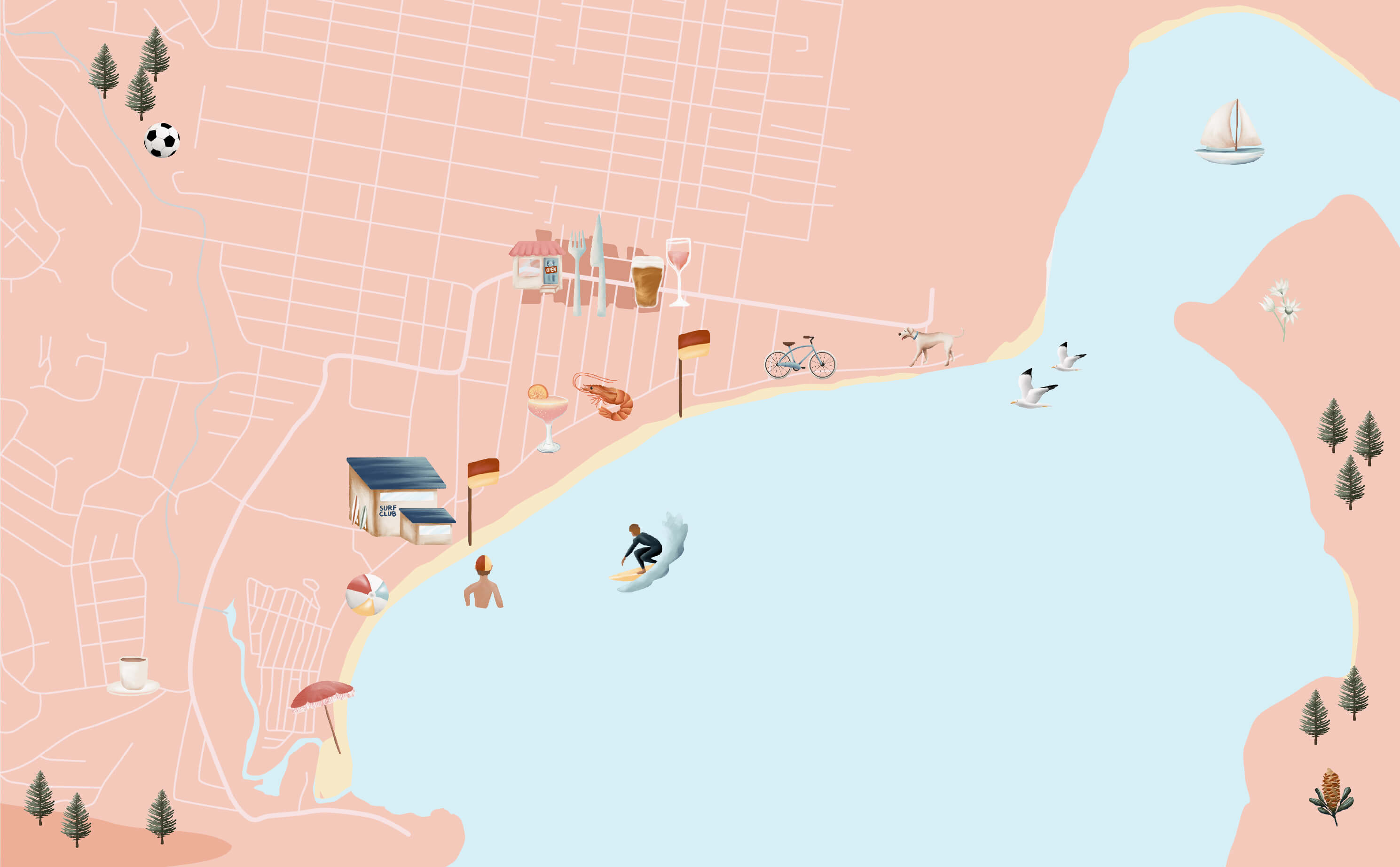 With easy access to the neighbouring suburbs of Ocean Beach, Ettalong Beach and Woy Woy, Umina Beach is also framed on one side by Brisbane Water National Park, making it a brilliant base for exploring hiking or biking trails from nearby Pearl Beach, Patonga or along Woy Woy Road. One of the most popular short walks is to Mount Ettalong Lookout for panoramic views of Broken Bay.