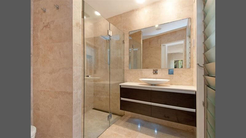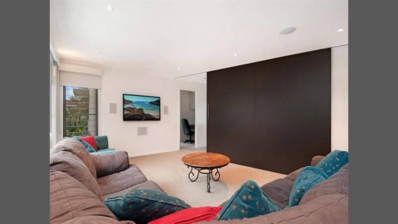 Upstairs are 4 bedrooms and main bathroom. Bedroom one features king size bed, ensuite and private courtyard, bedroom two contains queen bed and ensuite, bedroom 3 has two king singles, and bedroom 4 has a double bed. There is also a TV room for the children.