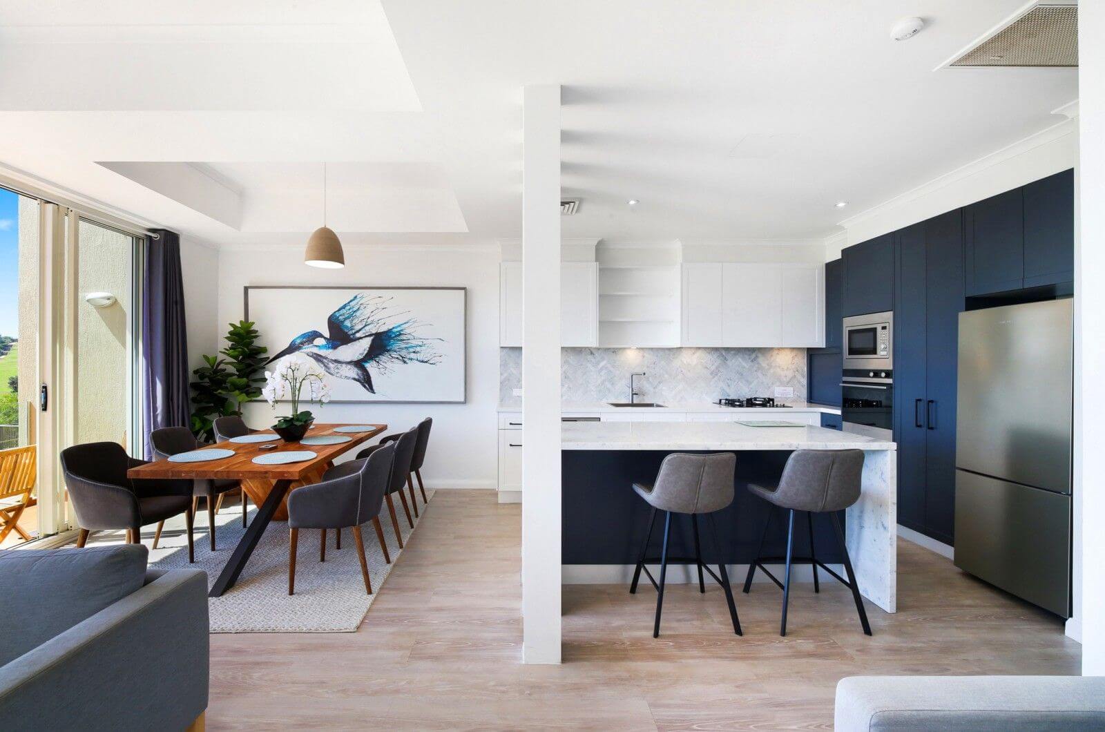 If you are looking for a property with the convenience of a central location as well as a spectacular view for your next holiday, you just can't beat Grand Mariner #8. Located opposite the ocean with stunning Terrigal Beach and its renowned cafes and buzzing main strip just a moments walk away. Set in a secure complex with elevator access from the basement, this stylish apartment offers expansive views, ducted air conditioning, light-filled living spaces, and private entry to its enormous upper deck with expansive views. Grand Mariner #8 is the perfect haven for families and couples to relax. The stellar location offers quick access to the waterfront while providing the serenity of The Haven. Master bedroom contains a king bed, en suite and walk-in robe. Bedroom 2 contains a queen bed and built-ins, bedroom 3 contains a tri-bunk bed and built-ins. *STRICTLY NO PARTIES / FUNCTIONS.
