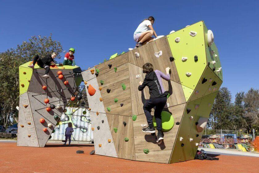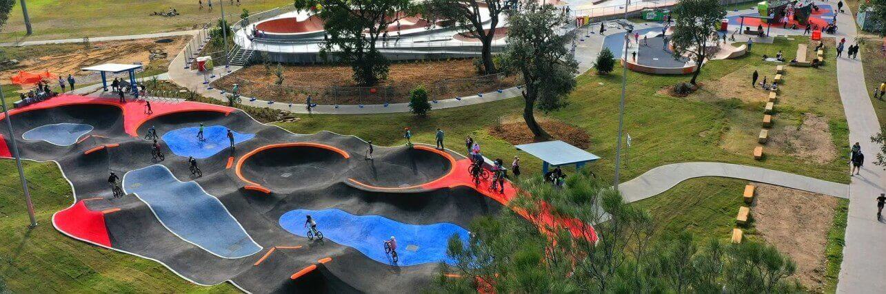 The onsite cafe, Jasmine Greens Park Kiosk serves healthy food and hot coffee and is right next to the fenced in shaded covered area for under fives. There are multiple play spaces for school aged kids including a flying fox, bmx track, skate park and bouldering climbing wall. Plus a basketball court, cricket practise nets and a futsual court.