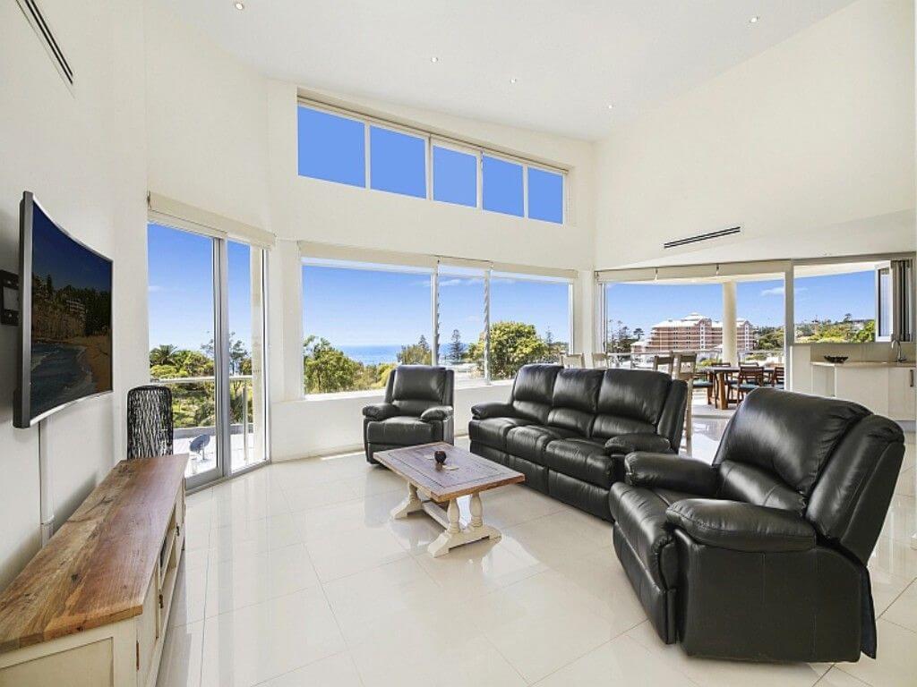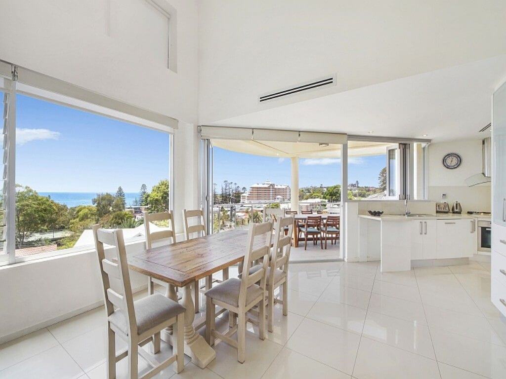 Be captivated inside this ultra modern penthouse apartment containing impressive panoramic ocean views. With its north facing aspect, extensive use of glass and ultra high ceilings Amalfi #1 offers a luxurious feel of light and space. A gentle 350 metre walk to the surf and sand, with secure entry to the complex and a lift to the garage, Amalfi #1 is a stylish beach escape. Master bedroom contains king bed, ocean views, balcony, built-in robes and en suite with shower, bedroom 2 contains a queen bed and built-in robes and bedroom 3 contains a tri-bunk bed.