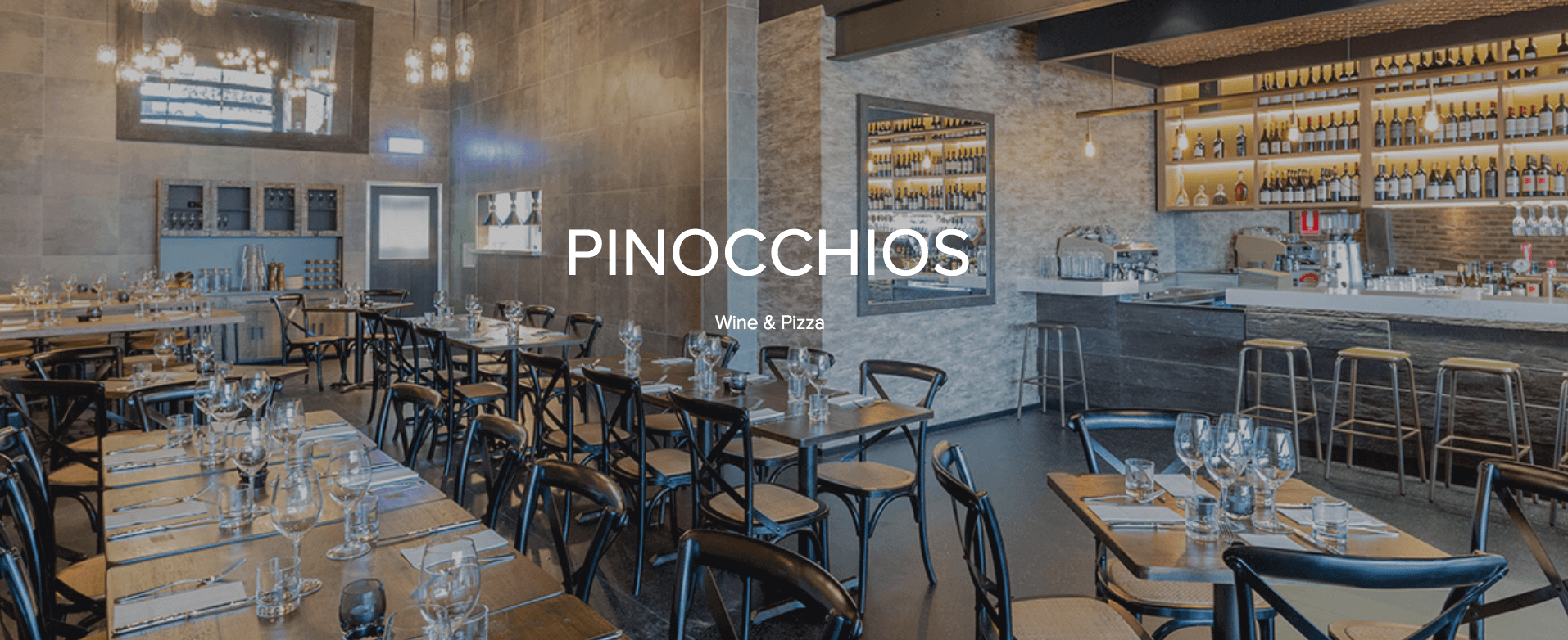 Pinocchios was born out of a conviction for wine - a means to share and express a deep and passionate appreciation for the vineyards of Italy and around the world. Pinocchios is a destination to be enjoyed by the masses, with hidden subtleties reserved for those who seek them out. We welcome and encourage you to explore and experience Pinocchios Wine and Pizza