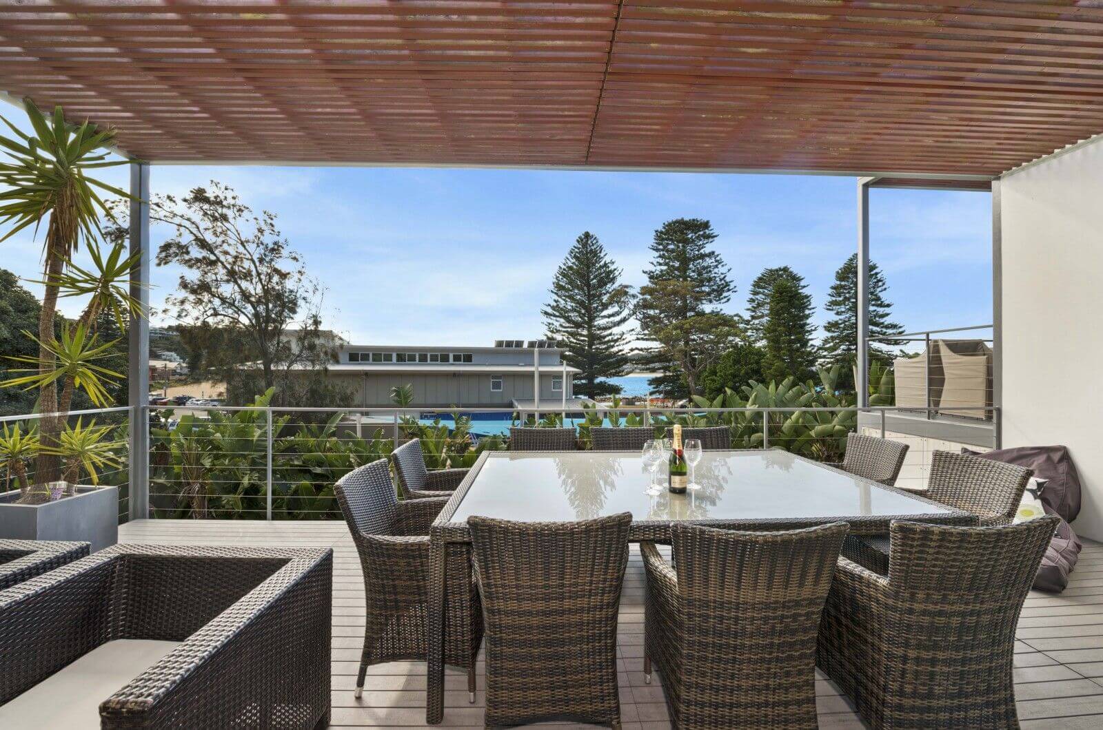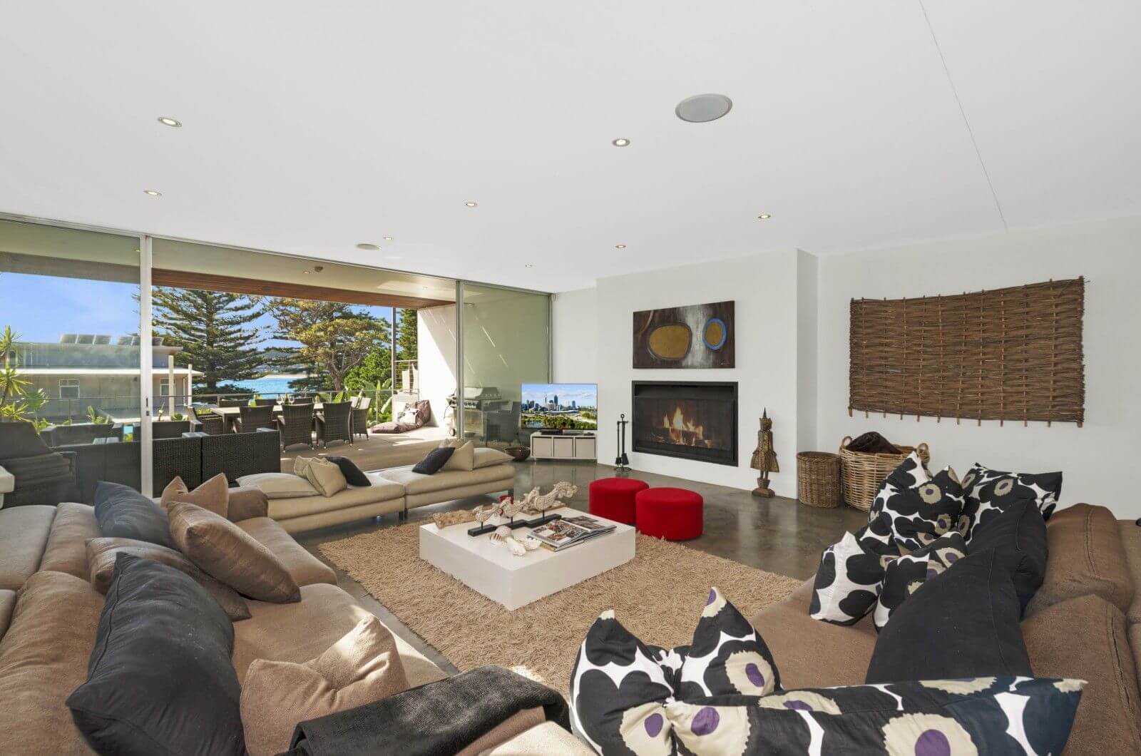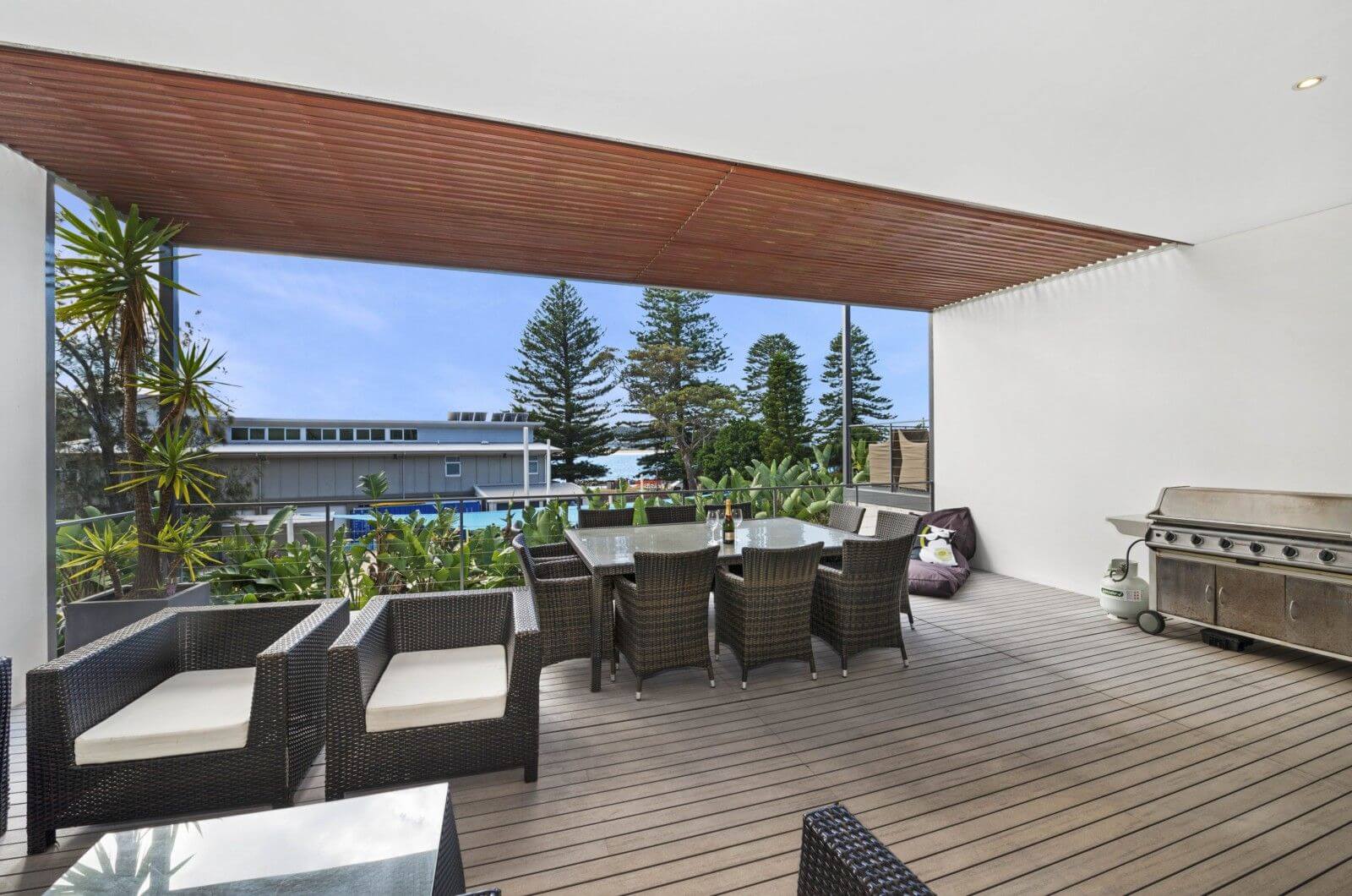 Avoca Beachfront Family Accommodation - This is a great location for a family holiday or weekend away. Talk about position - this has it all! A large undercover deck, a minute walk to rockpool, cafes and Avoca Beach.