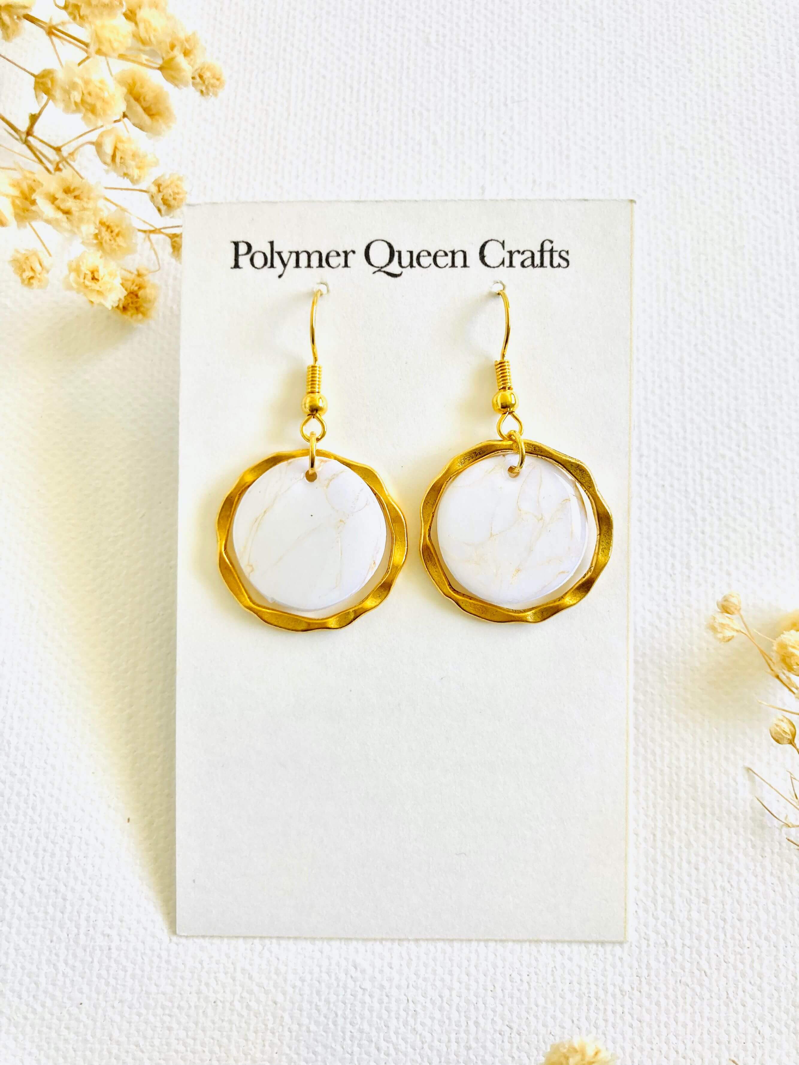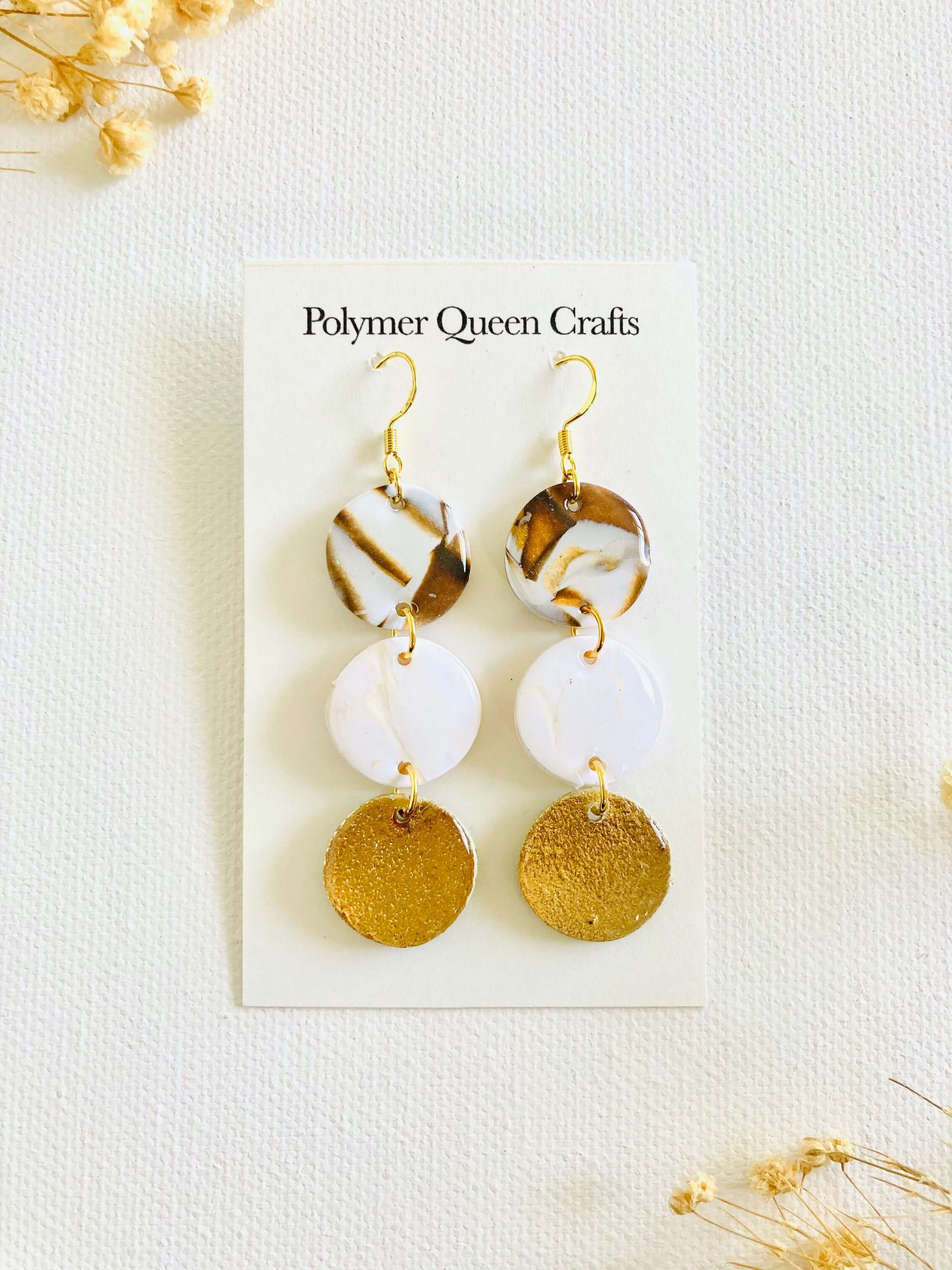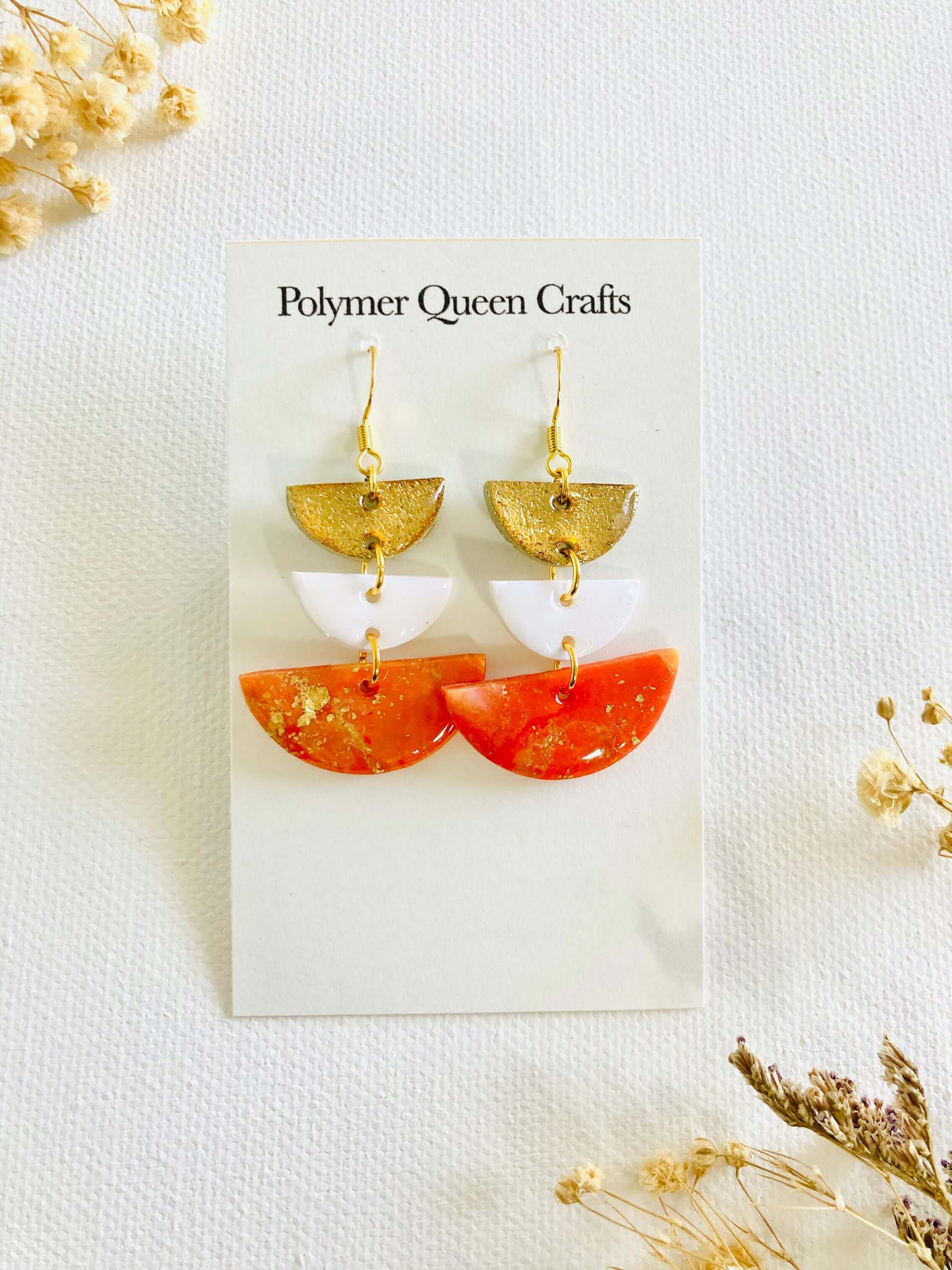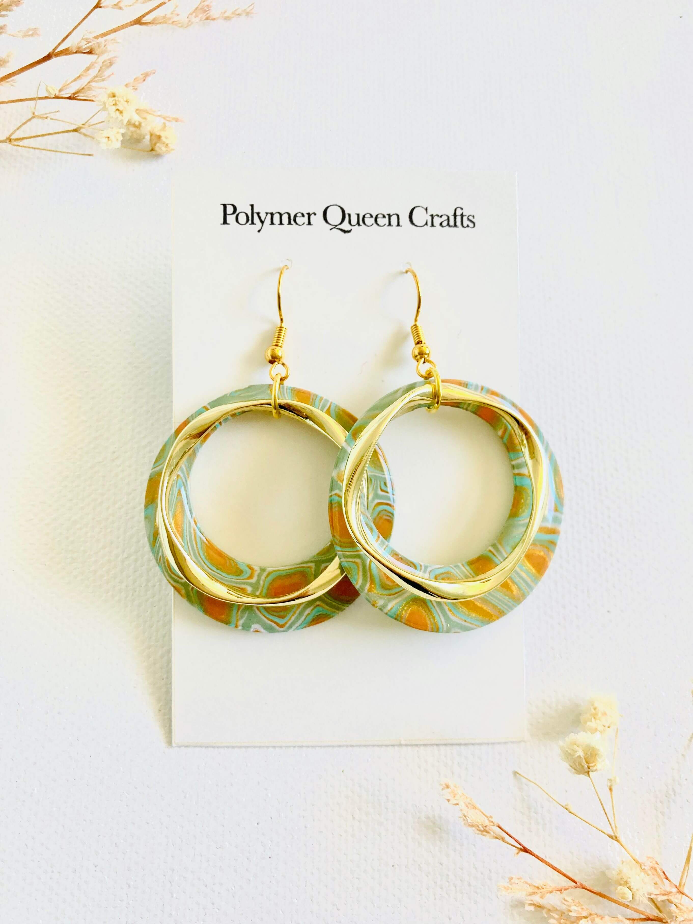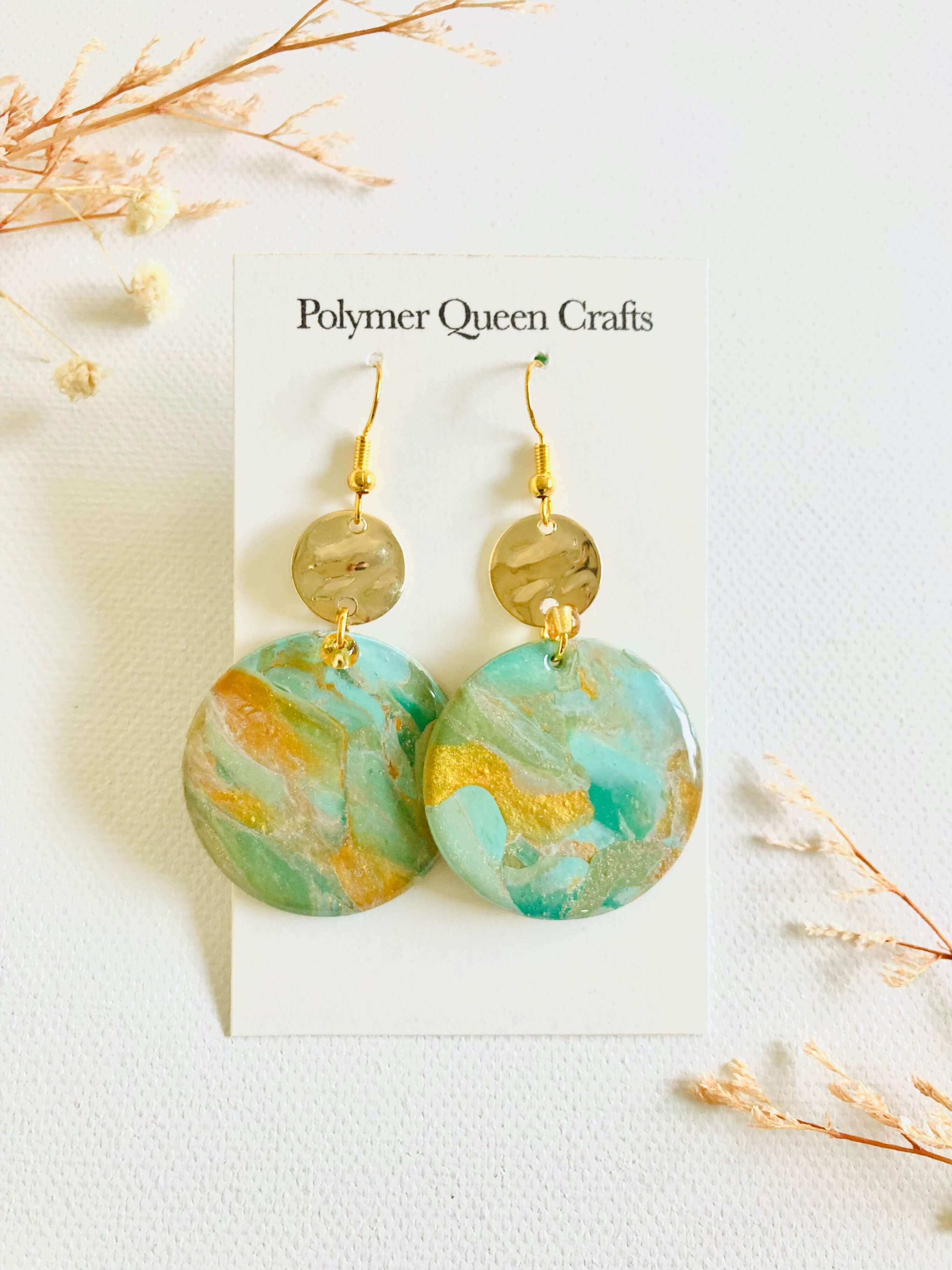 All earring is one of a kind with a unique design that is inspired by nature and multiple nationalities. Those are all handmade and made of polymer clay, resin, and brass.