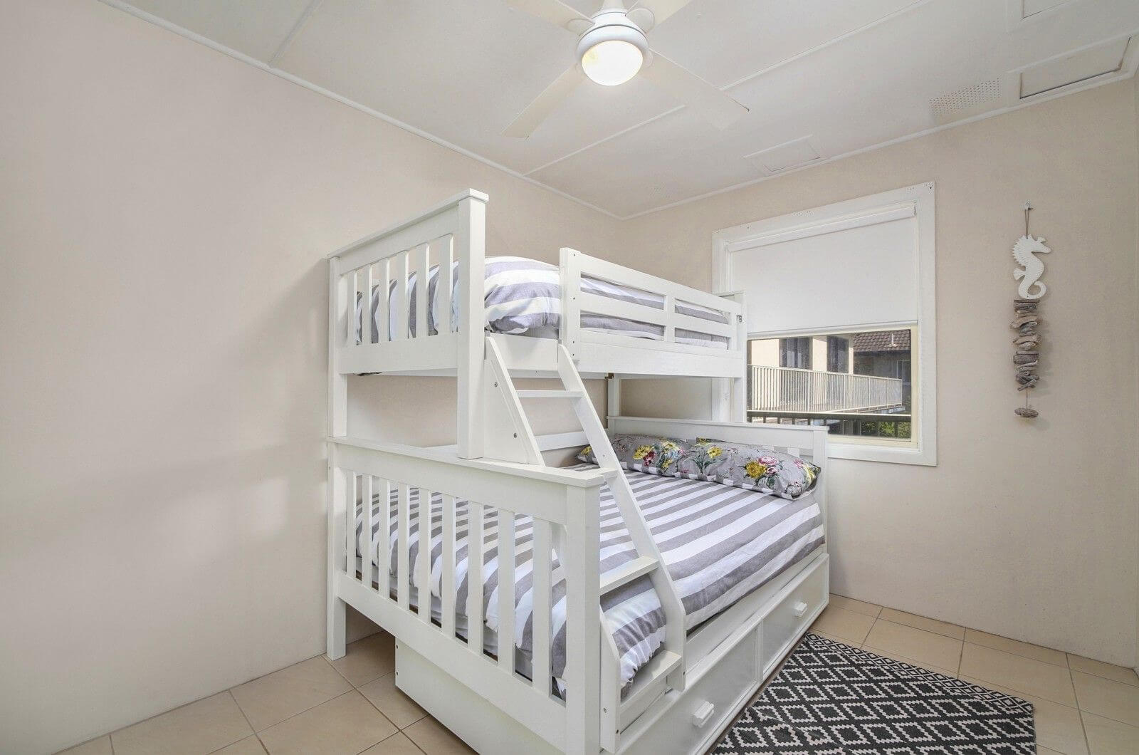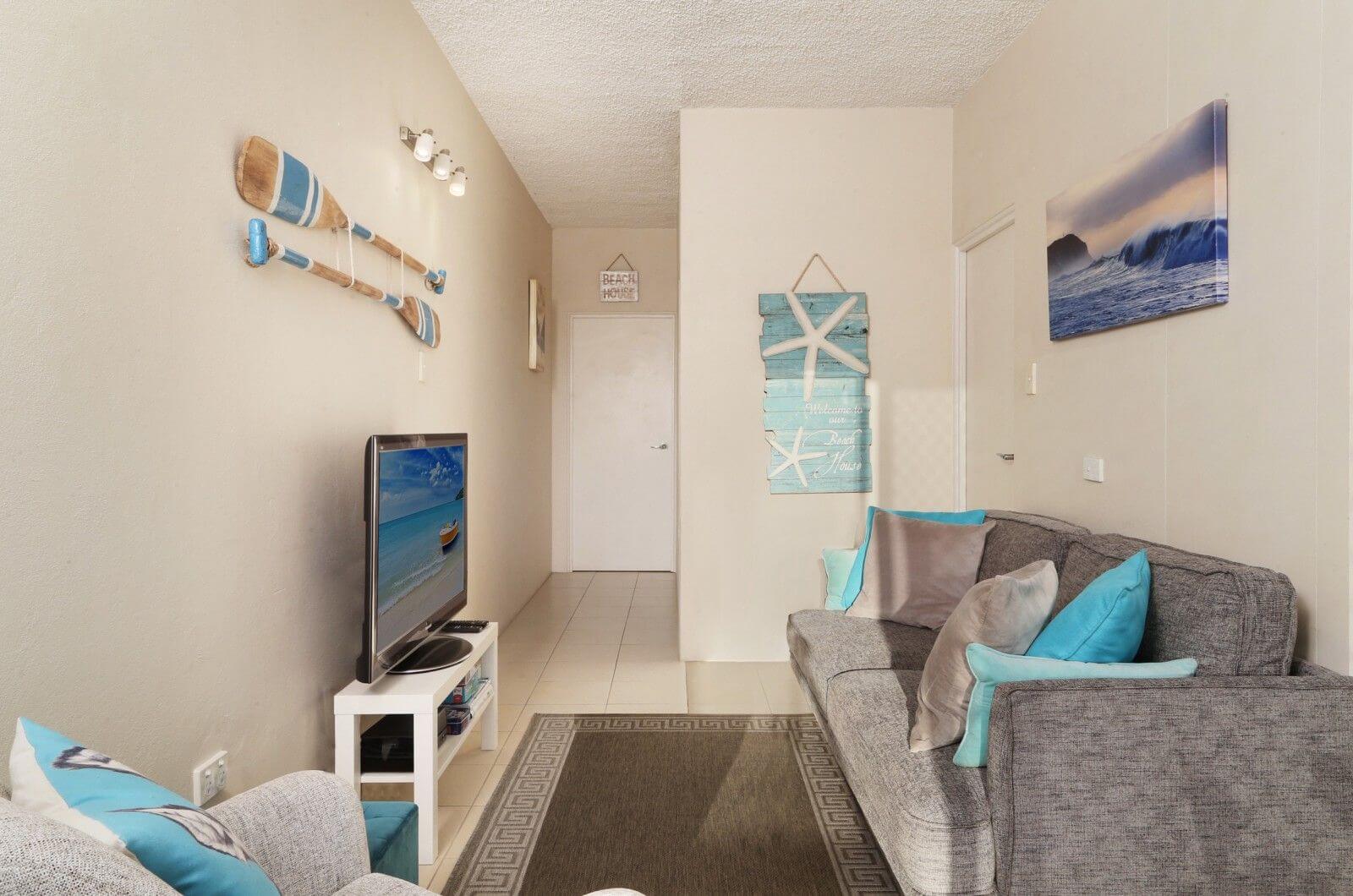Beachside #7 is nestled between Wamberal beach and lagoon- the ideal location if you are looking for a beach side getaway. Situated at the rear of a beachfront block with lagoon glimpses, this unit is only moments from the shore of Wamberal beach, accessed by the complex stairwell. Beachside #7 has been renovated internally with a bright and comfortable vibe. Walk along the sand to Terrigal beach and shopping esplanade. Master bedroom contains a queen bed with built in robes while bedroom 2 contains a tri-bunk with an extra trundle bed. WiFi not included. *STRICTLY NO PARTIES / FUNCTIONS.