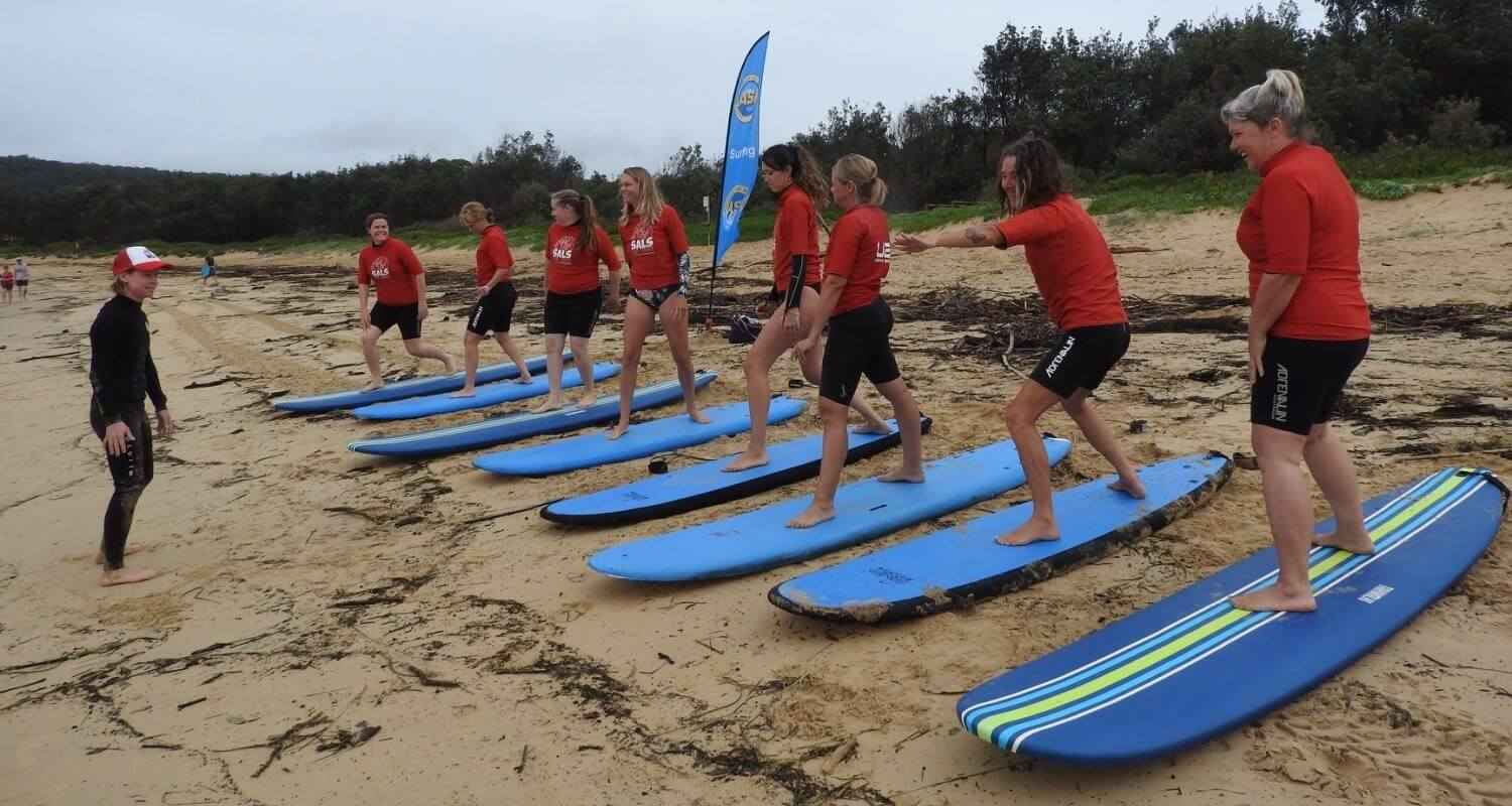 13xAustralian Surfing Champion Sandra English owned Surf School on the NSW, Central Coast.  Surf lessons for beginners to advanced at Soldiers Beach, Norah Head.