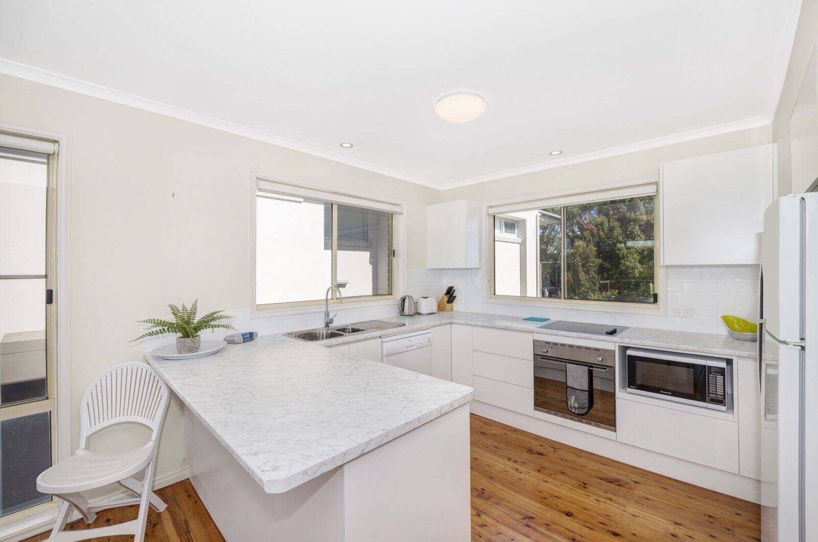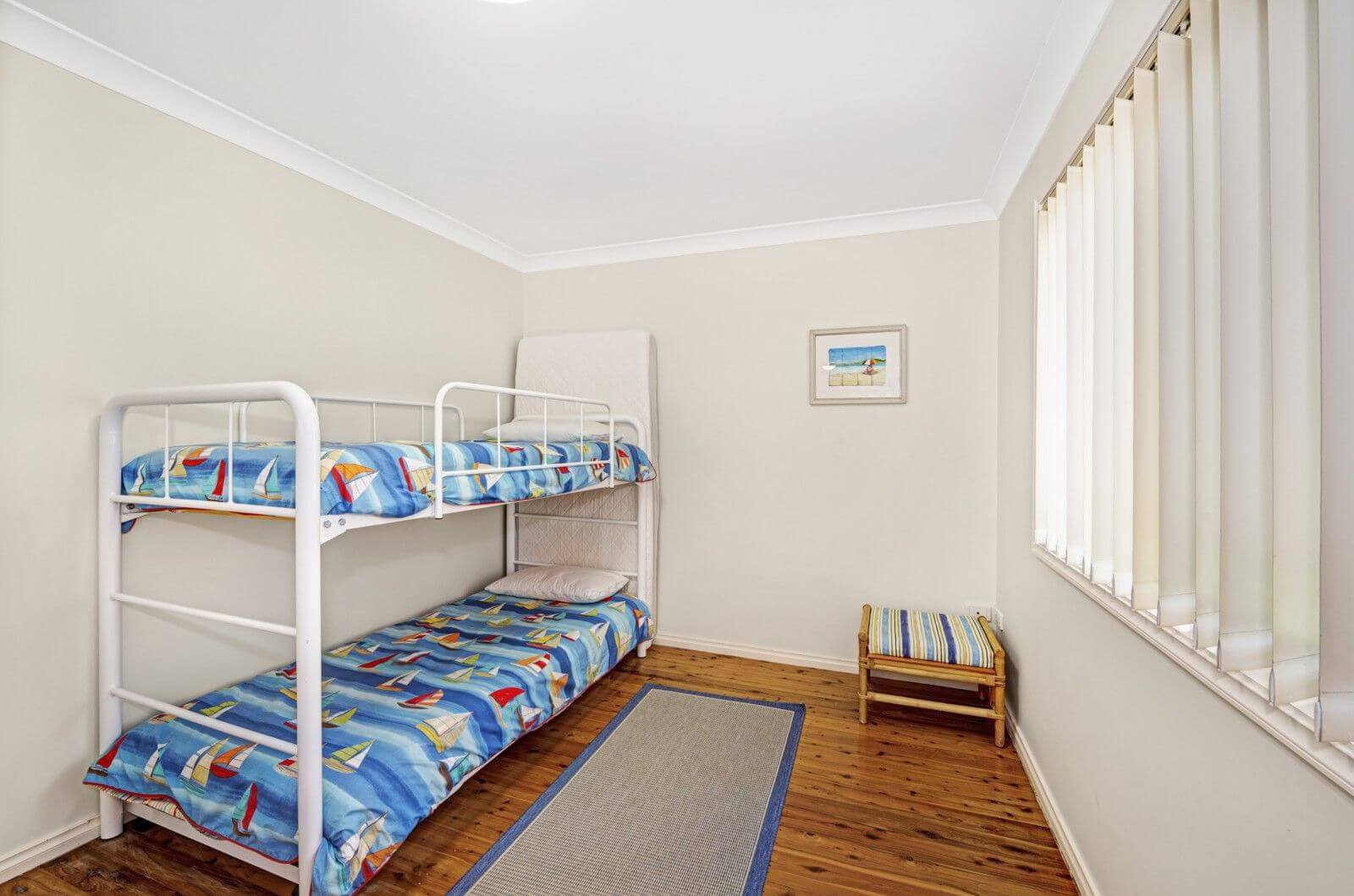 Bedroom 1 contains a queen bed, ensuite and balcony with views to Avoca Lake. Bedroom 2 downstairs contains a queen bed, enjoying ocean views. Additional sleeping arrangements consist of 1 x double bunk and a full sized single trundle bed, plus a queen size sofa bed. Linen not provided.