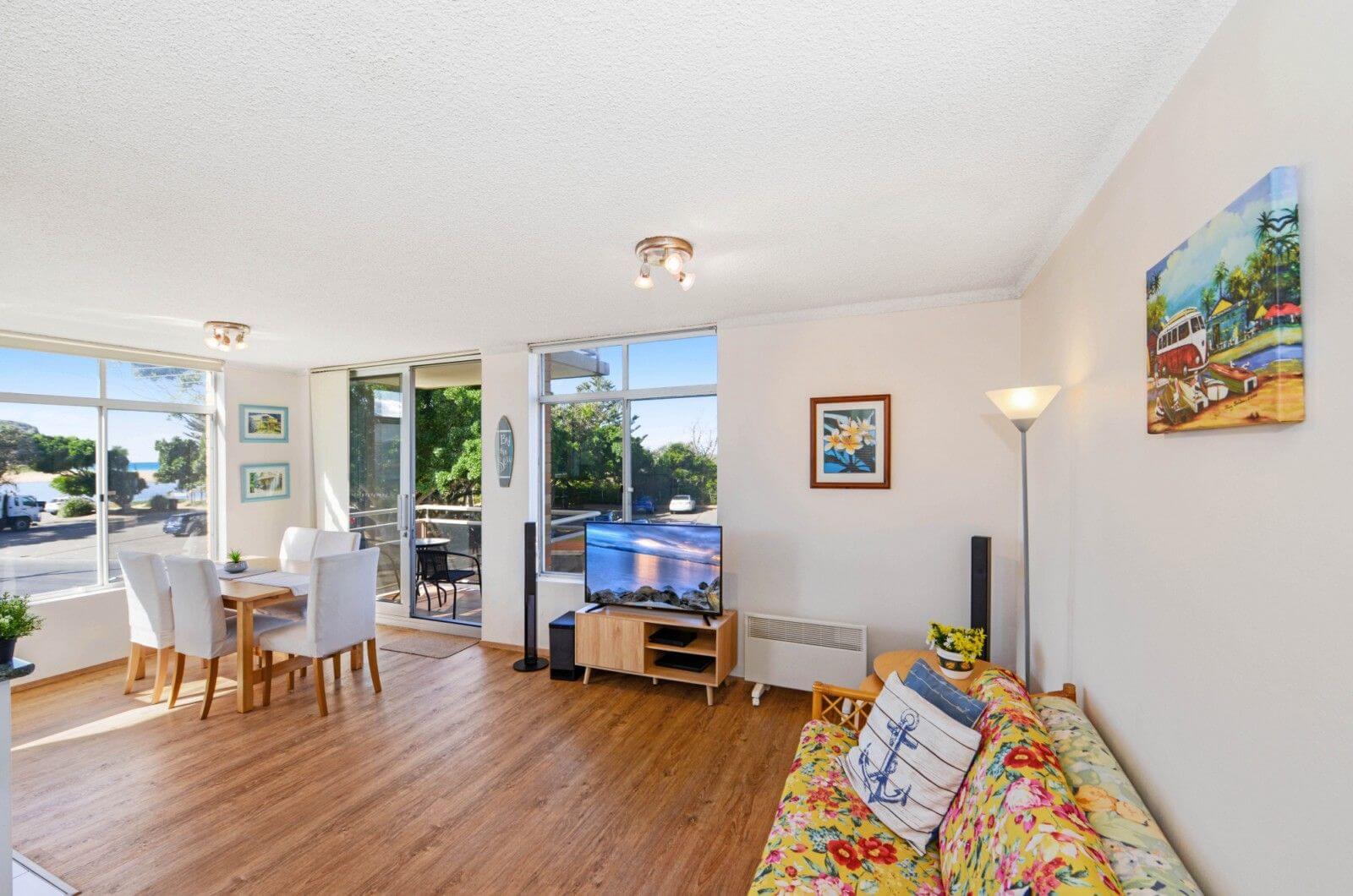 Seaview 4 is a delightful, bright and airy apartment with uninterrupted views over Avoca Beach and Avoca Lake. All linen is supplied at this property.
