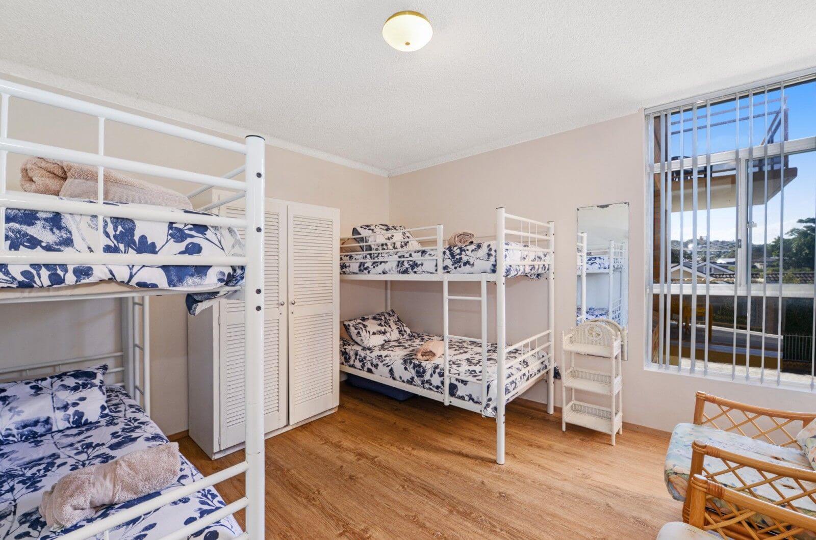 Main bedroom contains double bed and second bedroom contains 2 sets of double bunks. All linen is supplied.