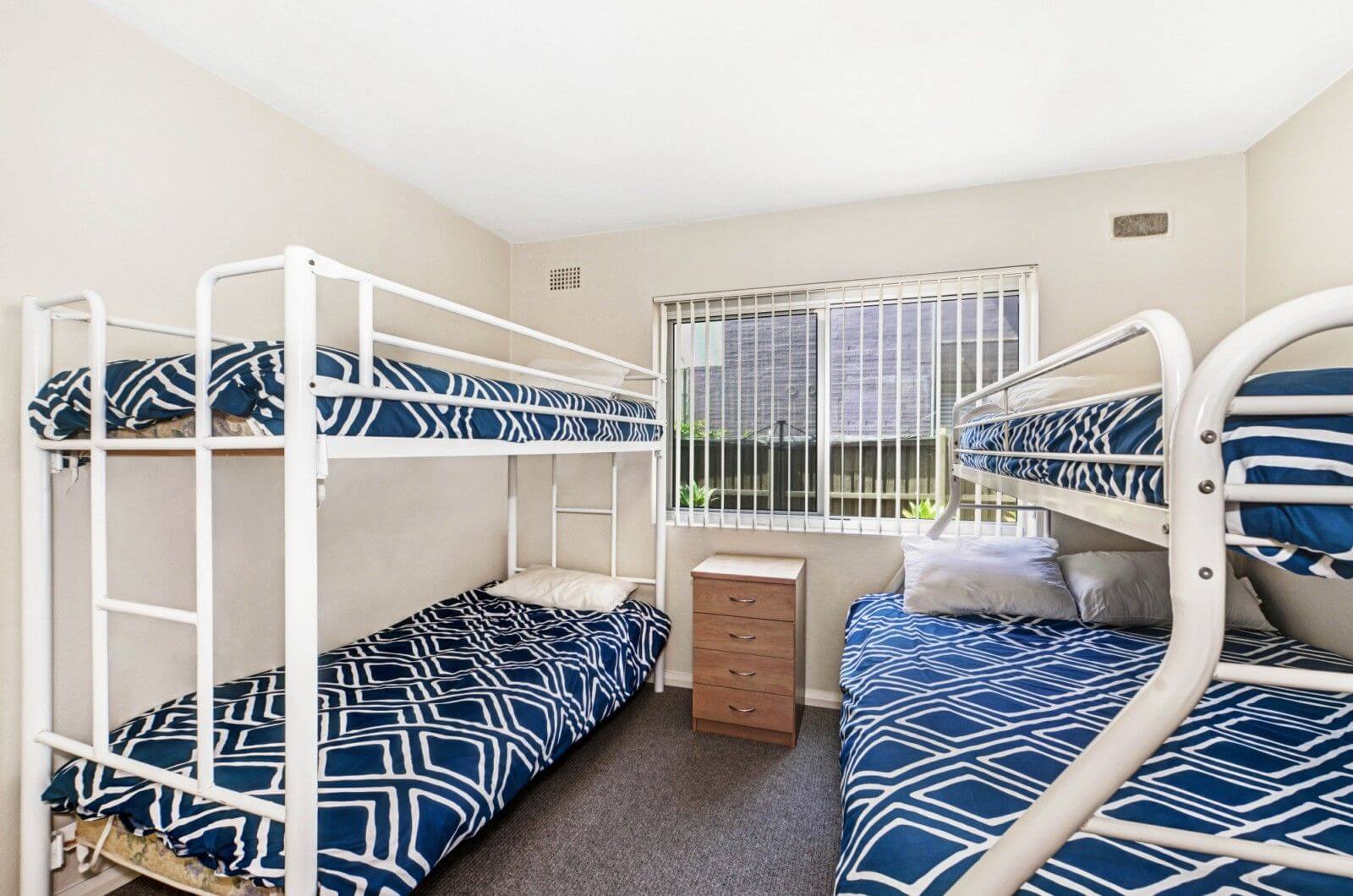 Bedroom one contains queen bed. Bedroom two has a double bed with a single on top and one set of bunks. Linen not provided.