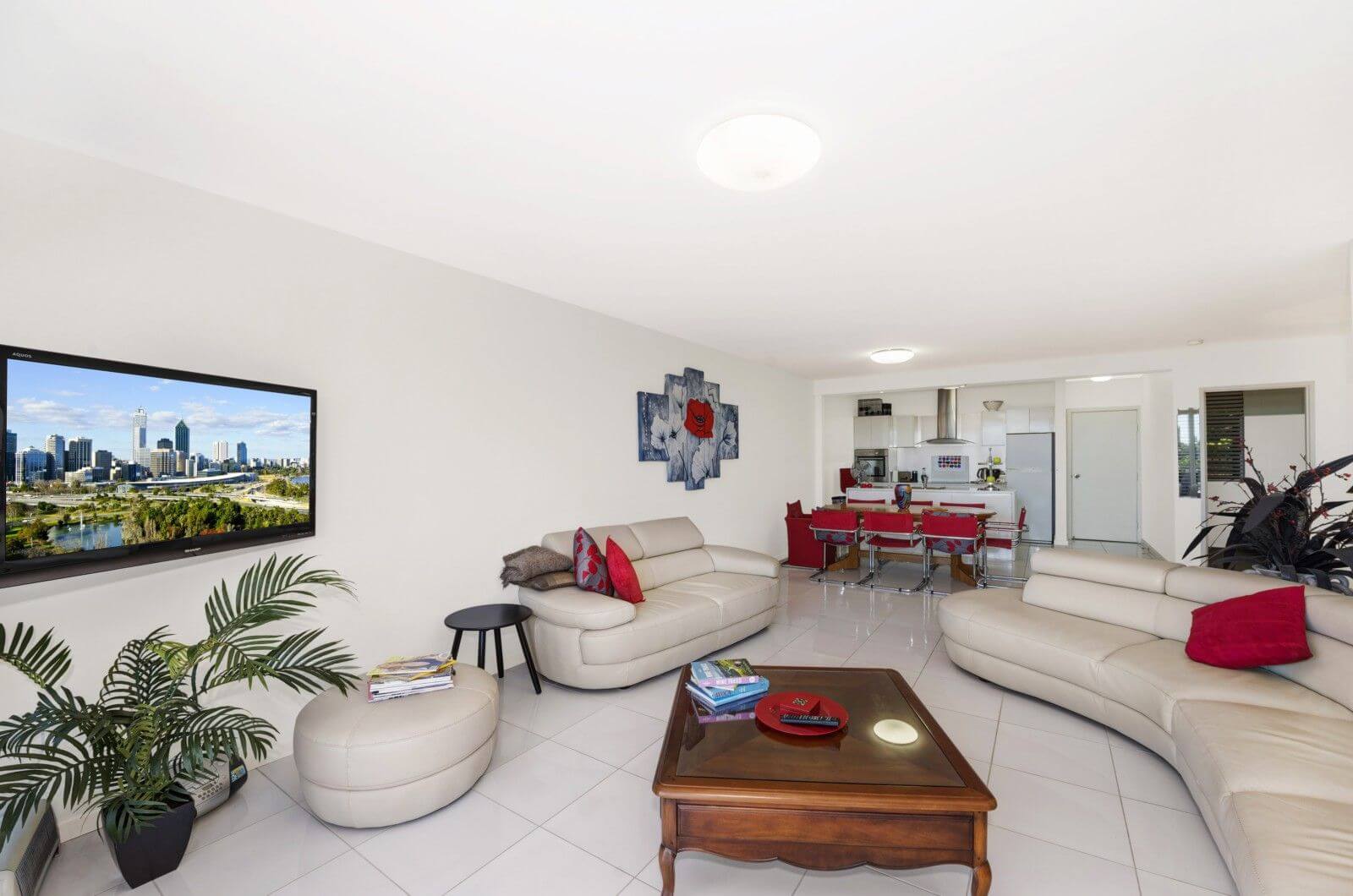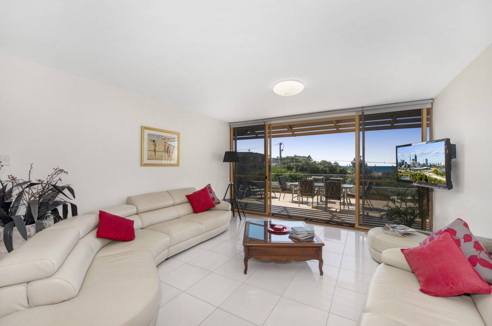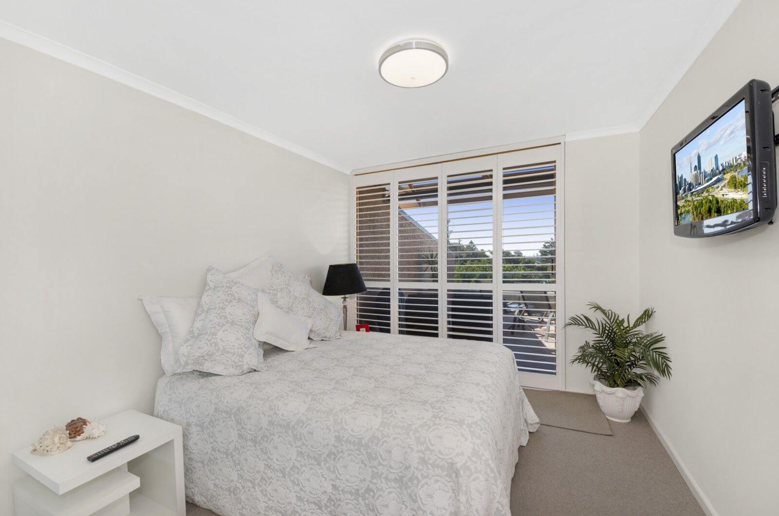 Main bedroom has queen bed, television, DVD and opens onto the large balcony. Second bedroom has a double bed. Fully equipped kitchen. Laundry with washing machine and dryer. Linen not provided.
