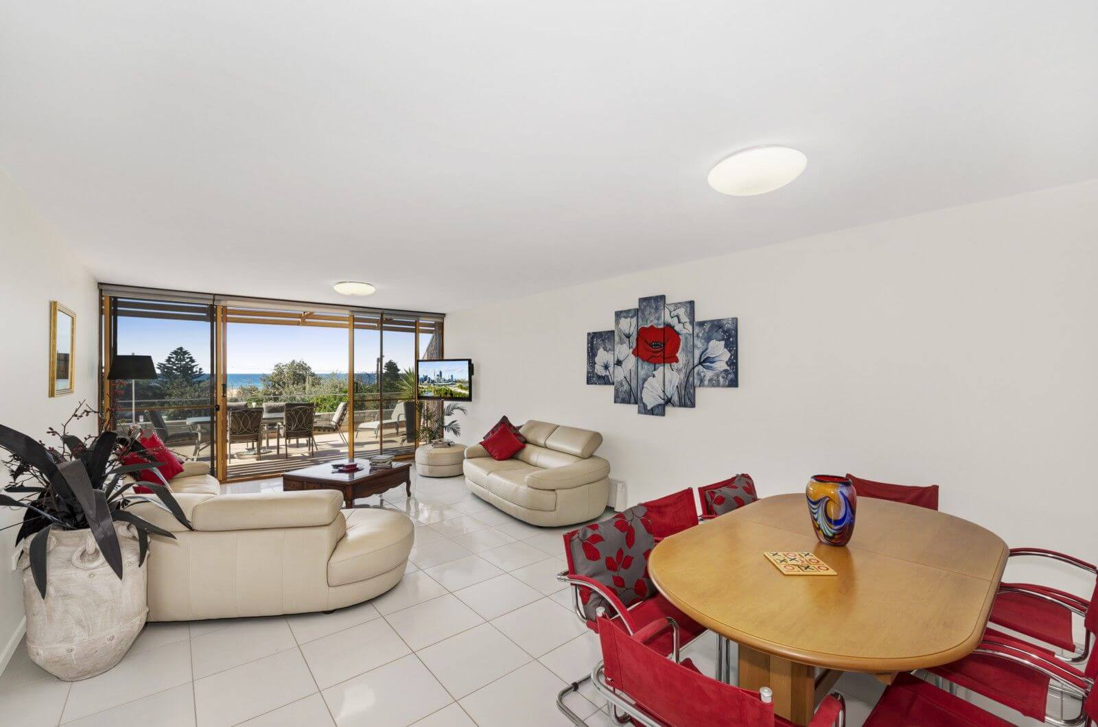 Fabulous beach and ocean views can be seen from the balcony of this chic apartment. Seamless indoor/outdoor living. Beautifully finished with luxurious furnishings. Ideal for a romantic getaway with that special person, or with special friends. COUPLES ONLY. Wi Fi and Air Conditioning also at this lovely unit.