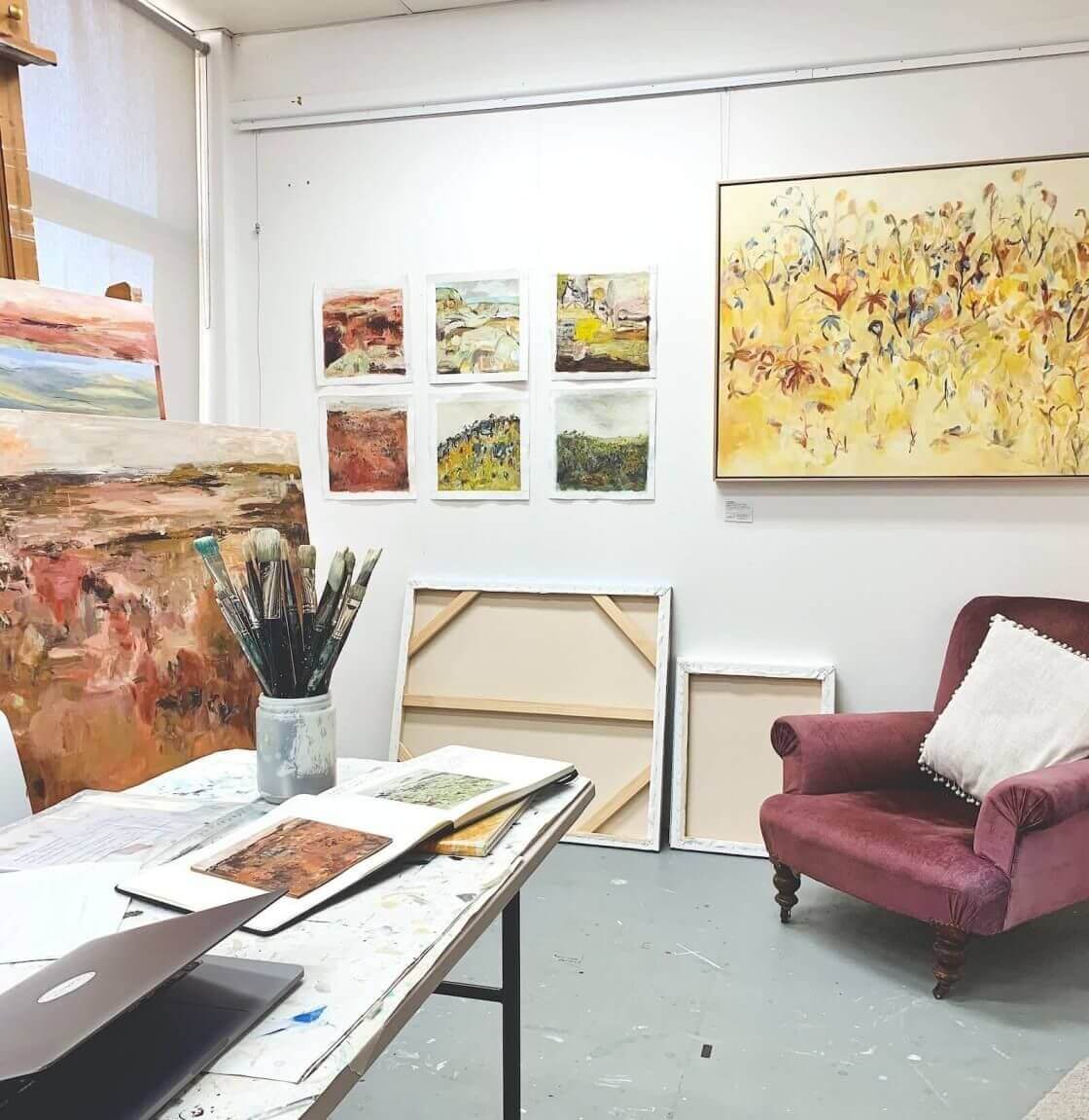 Beyond the gallery sits our light-filled studio where the creative magic happens and we enjoy inviting clients through to view current works in progress and gain an insight into our artistic process. It is also where we present individual and small group painting, drawing and photographic workshops, where we allow participants a hands-on engagement with the various aspects of art and photography making. When Robyn is not painting in the studio, Darren takes over, quickly transforming it into a photographic studio where he creates portraits and headshots for commercial and private clients.