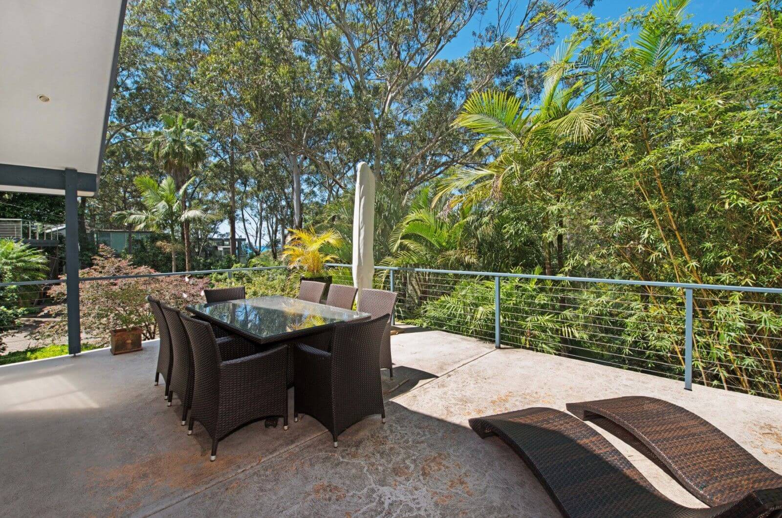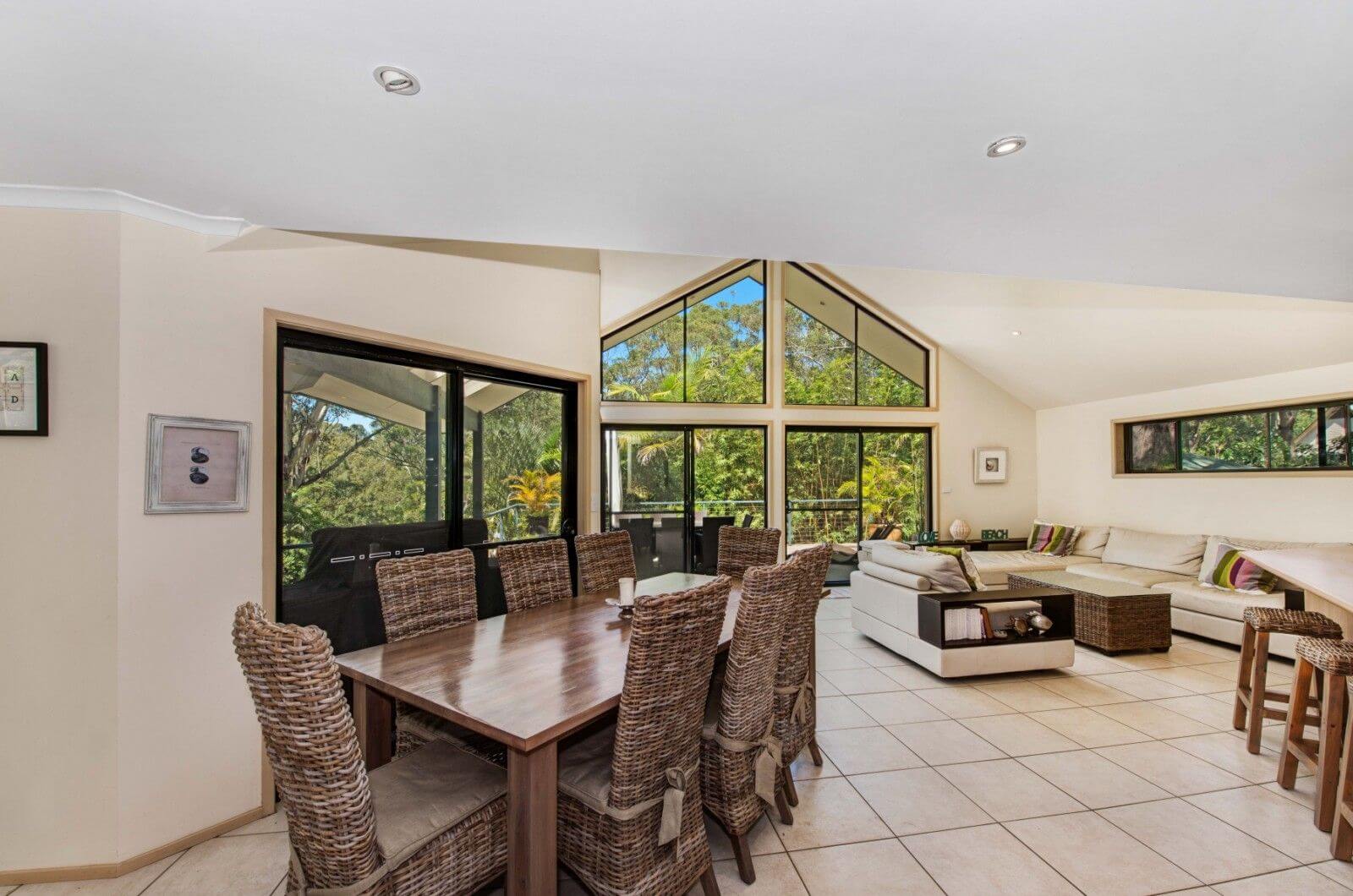 Treetops beach house is a luxurious holiday house that sits on the high side of the street with tree filtered ocean views. It is 300m from MacMasters Beach. This home is extremely private and peaceful. It is a tropical paradise ideal for a relaxing family holiday.
