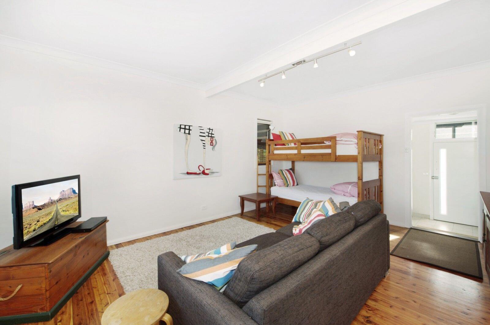 North Avoca Family Accommodation - The Beach House - Is right across the road from North Avoca Beach.This beach cottage has been partially renovated and there is access via a pathway onto the beach! It has good views of the ocean from large front deck.