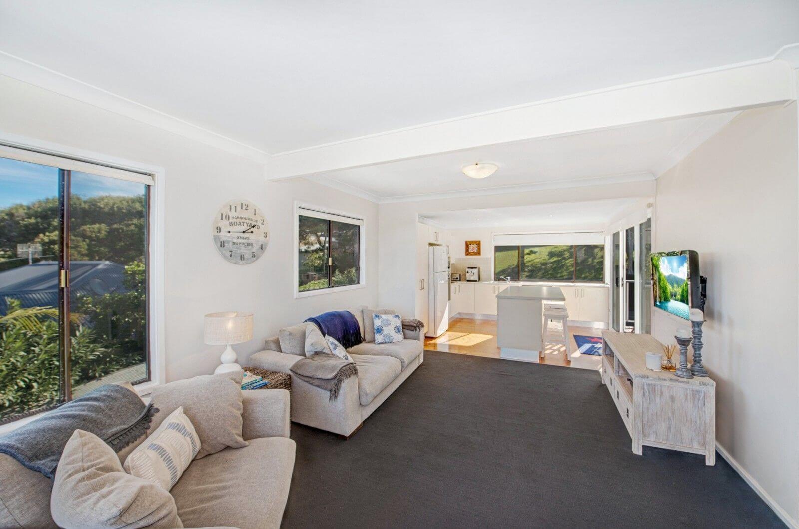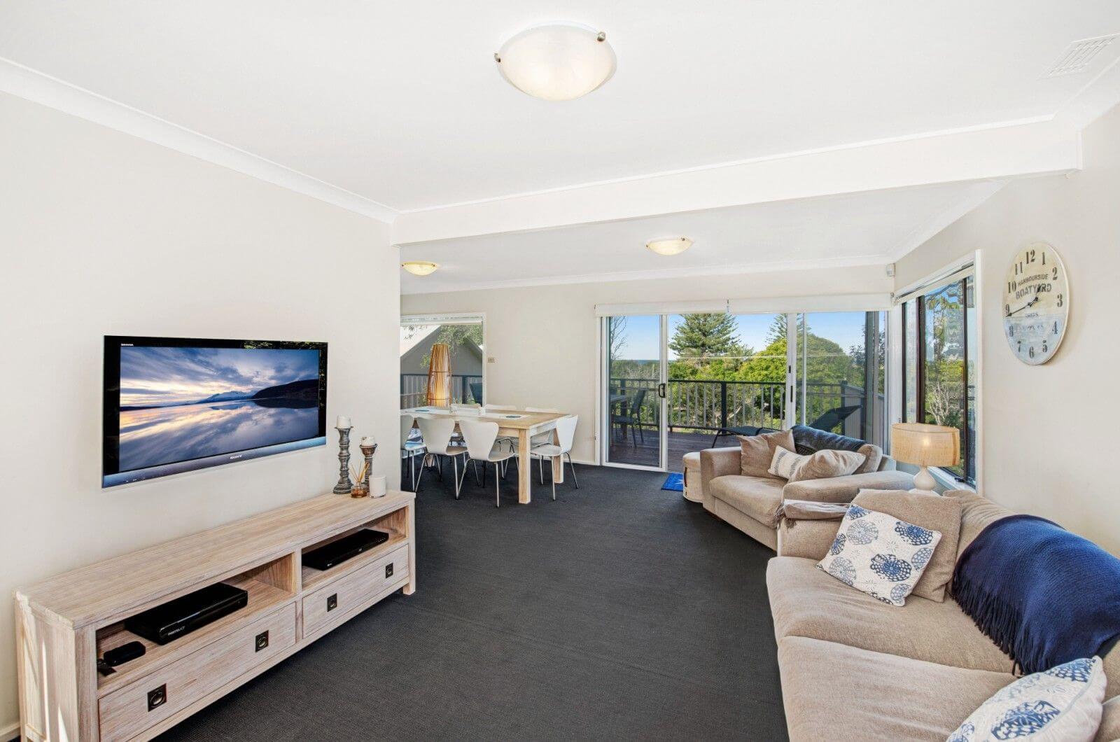Upstairs has decks, front and rear. Open plan kitchen with dishwasher and new appliances. The lounge and dining room open onto the front deck. Lounge room has large flat screen TV/DVD player. Downstairs TV room contains king single bed. Bathroom downstairs incorporated with laundry. Great yard for children.