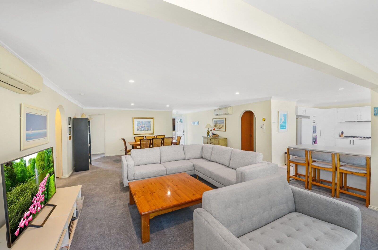 Air conditioned living area. Or holiday rent the downstairs section consisting of 4 bedrooms, (sleeping 6 people).