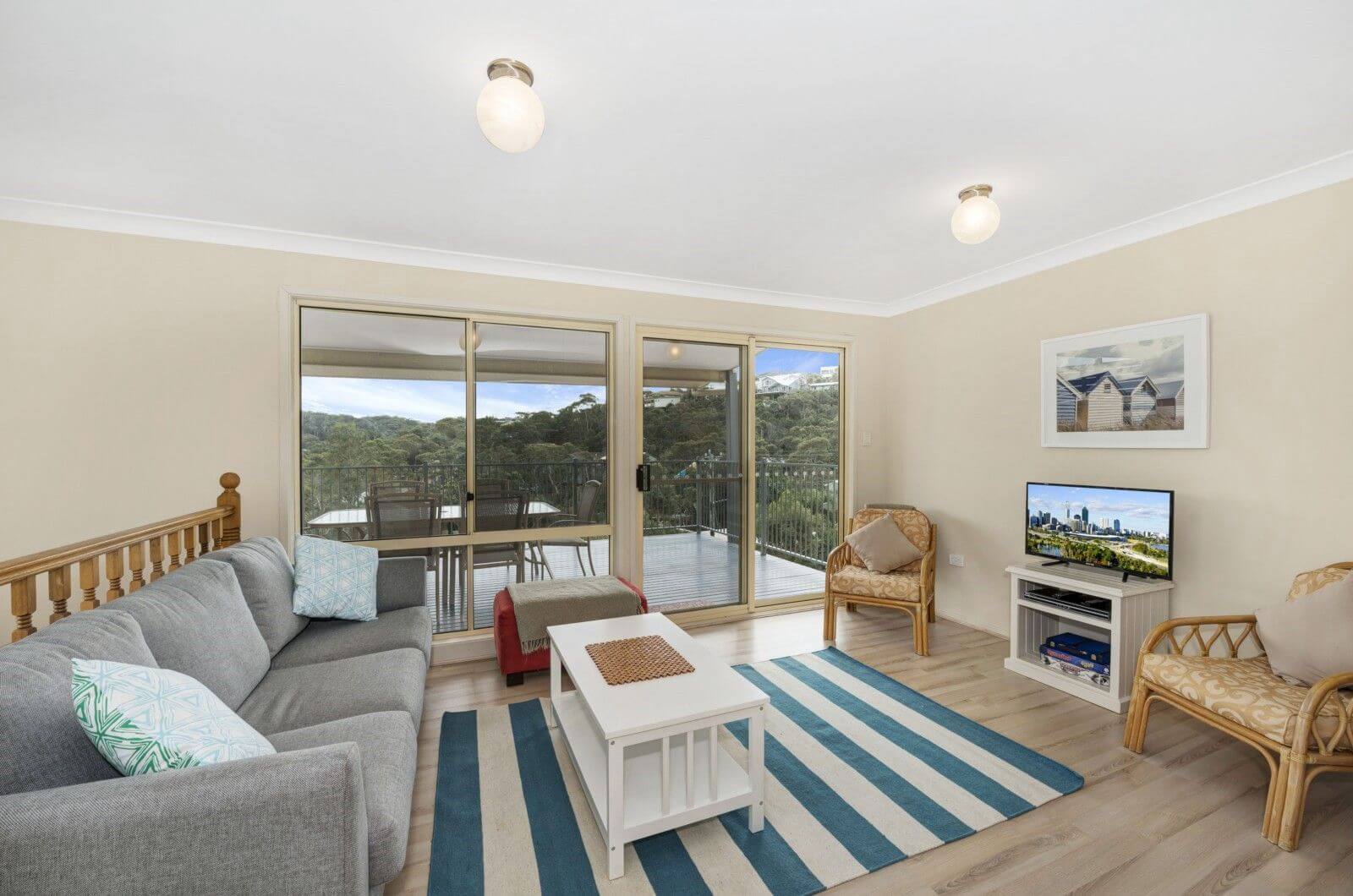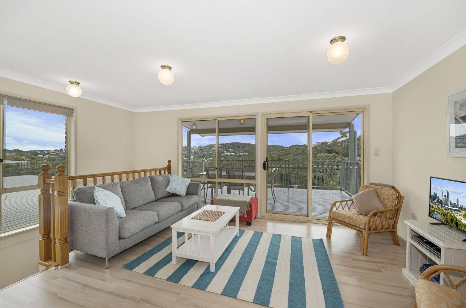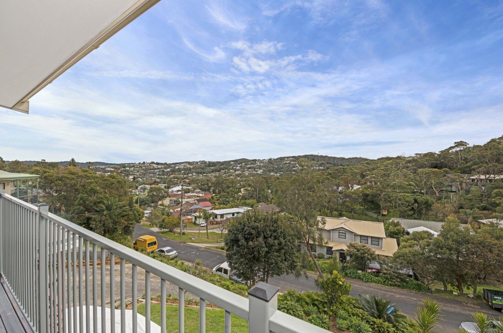 Perched high overlooking the valley this residence has a stunning panorama and is only a 3 minute walk to the beach. The property also has a steep driveway.