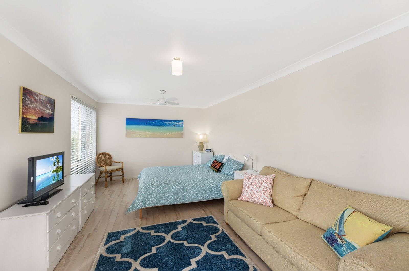 This outstanding residence contains modern fully equipped kitchen with microwave and dishwasher. Bedroom 1 contains A king size bed, TV and ensuite and is on the entry level. Bedrooms 2 and 3 have queen beds, and Bedroom 4 has 1 single and 1 trundle bed and are upstairs. Linen is not provided.